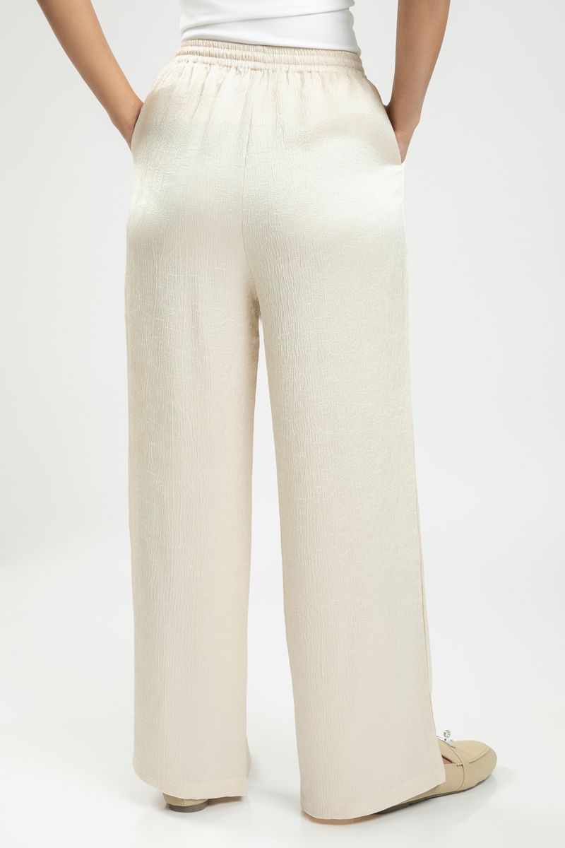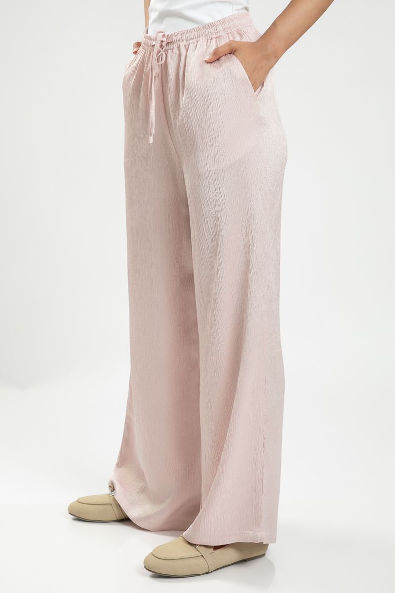 Women's Flowy Wide-Leg Pants Solid Color, Textured Fabric