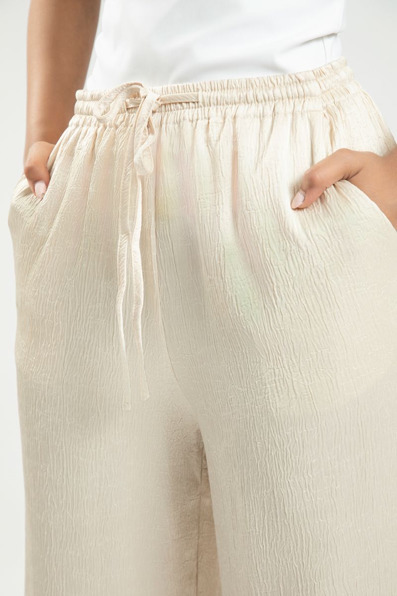 Experience effortless comfort and style with these flowy wide-leg pants crafted from textured fabric. Featuring a solid color design, elastic waistband with adjustable drawstring, and practical pockets, they provide a relaxed fit perfect for casual wear or lounging