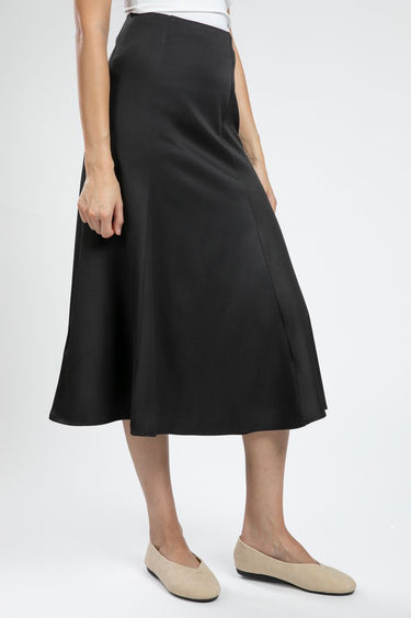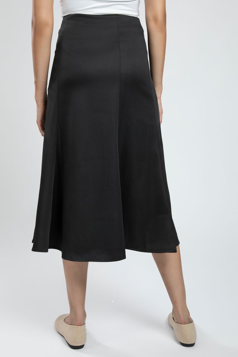 Office Attire Style Womens A-Cut Midi Skirt Soft Satin Fabric