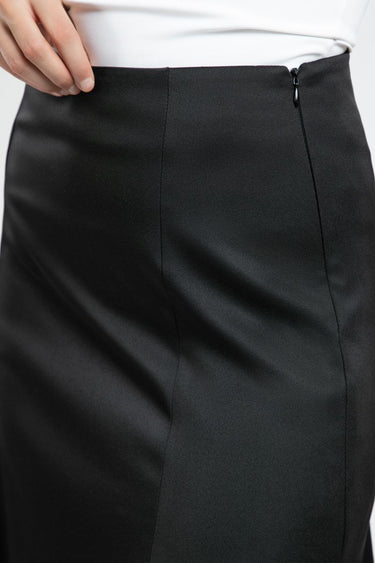 Graceful and professional. This A-line midi skirt is crafted from soft, delicate satin in a solid color, offering a flowing silhouette with a subtle sheen. Finished with a discreet side zipper for a clean and refined look, perfect for office wear or polished occasions.