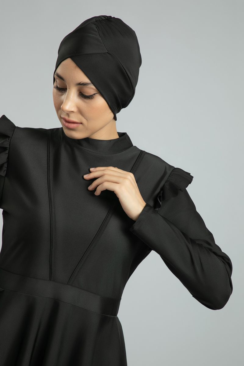 Elegant Modest Swimsuit In Solid Color With Matching Swim Cap