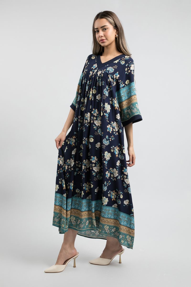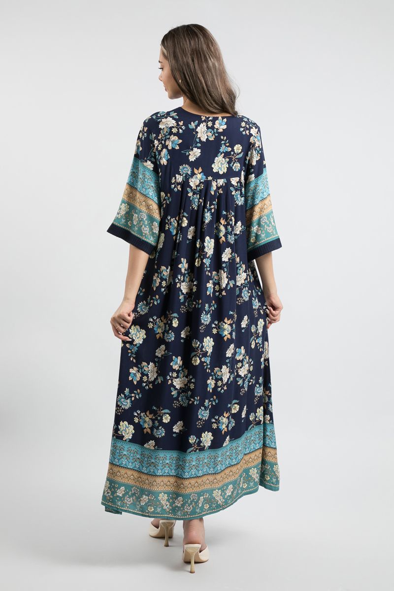 Featuring three-quarter sleeves and a flattering V-shaped neckline, this dress exudes elegance while keeping you cool and comfortable on the hottest summer days