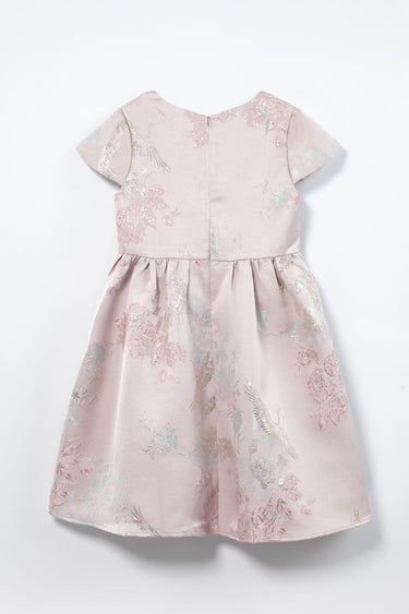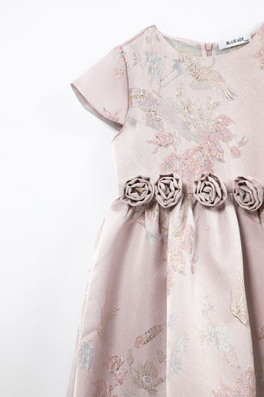 decorated with a woven floral printed pattern fabric on full design and flowers ornaments detail on waistline