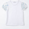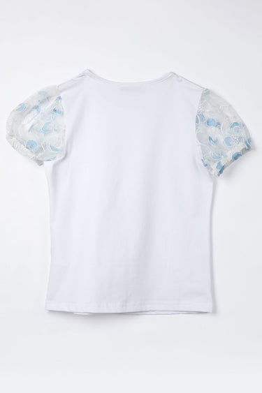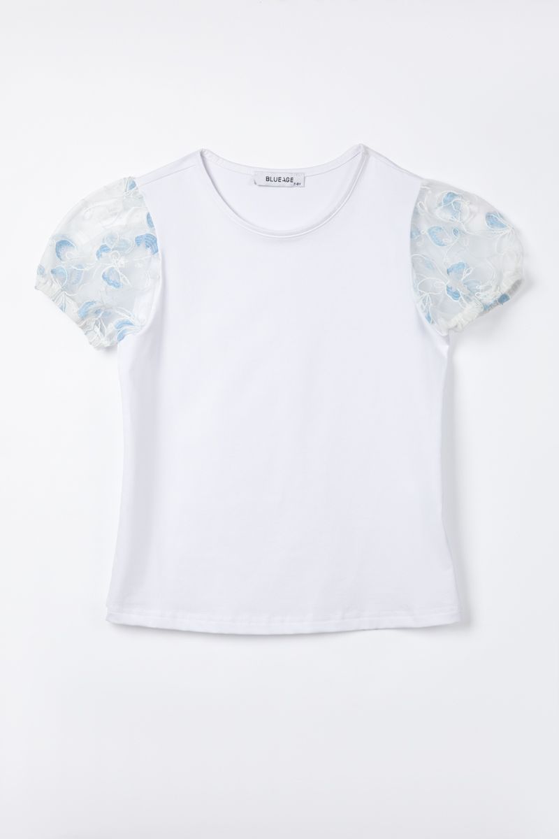 sleeves designed with chiffon fabric decorated with contrast colored embroidery
