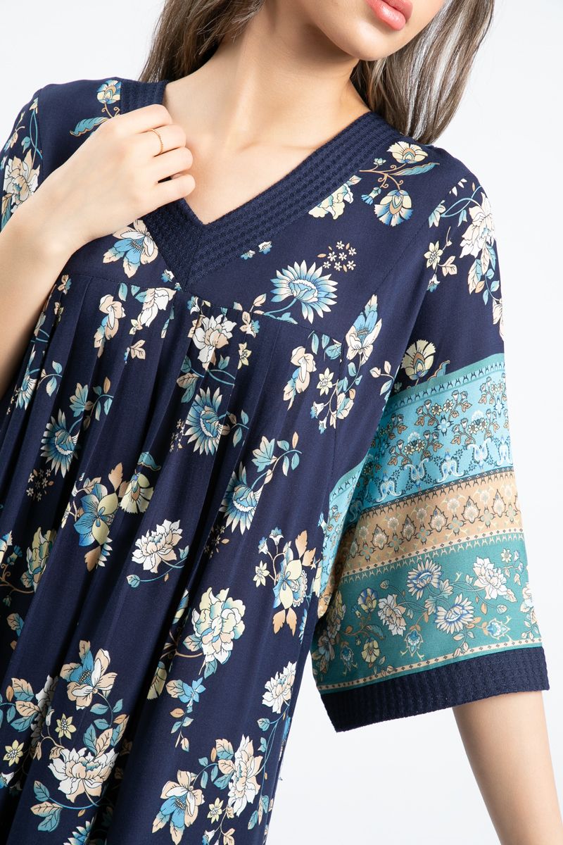 Longline Flowy Printed Summer Women'S Dress With Three Quarter Sleeves
