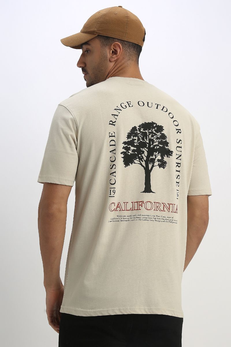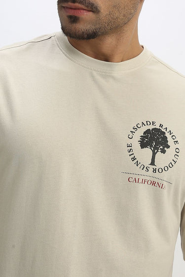 Mens Casual T-Shirt with Front and Back Prints and Crew Neck