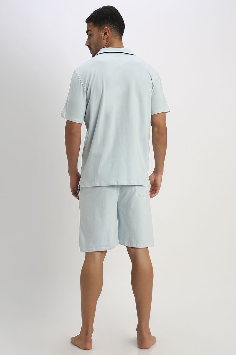 Men's Two-Piece Lounge Pajama Set with Button-Up Shirt and Comfy Shorts