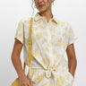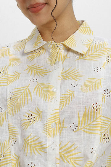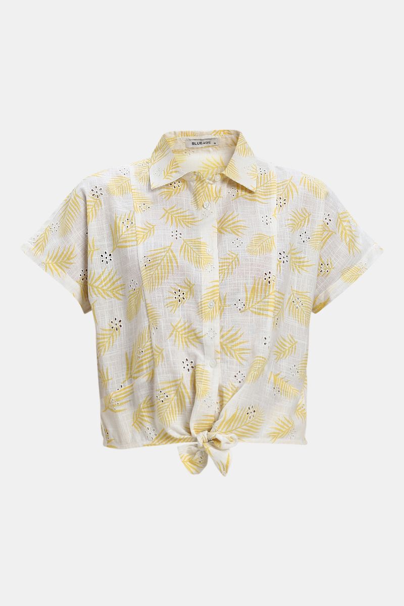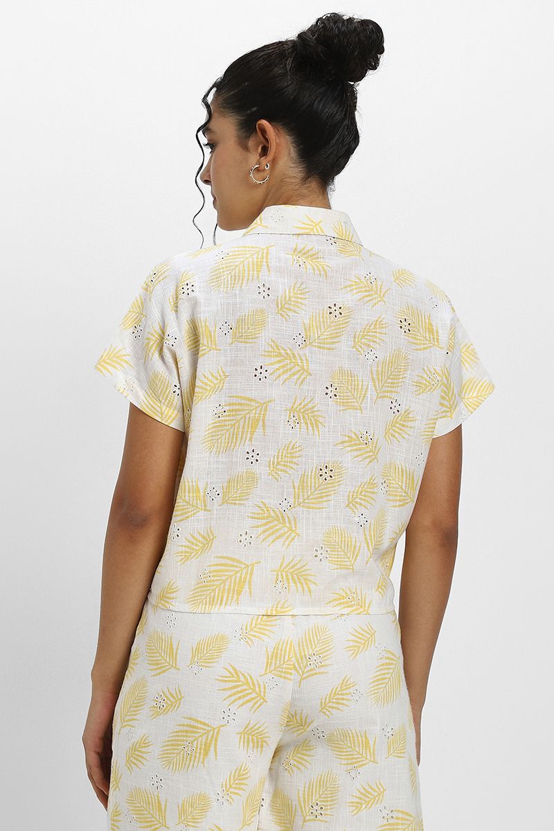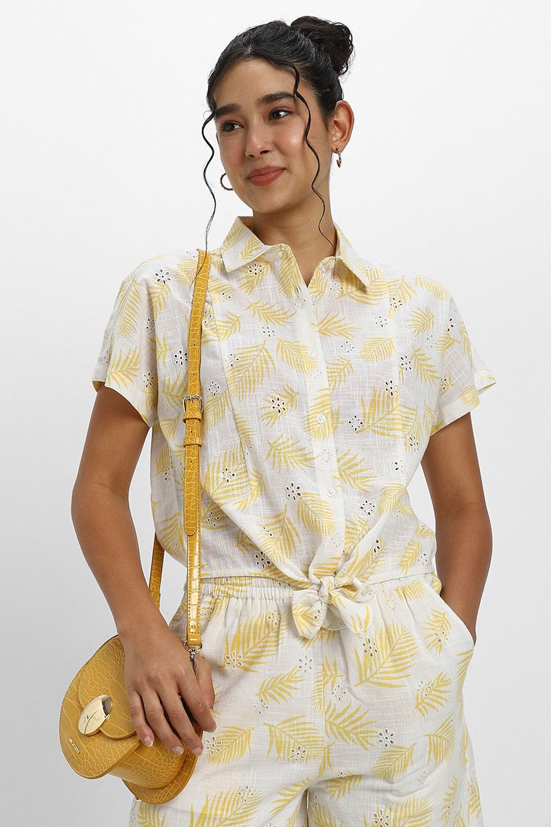 Short Sleeves Cropped Women'S Summer Shirt - Printed Pattern, Perforated Detail
