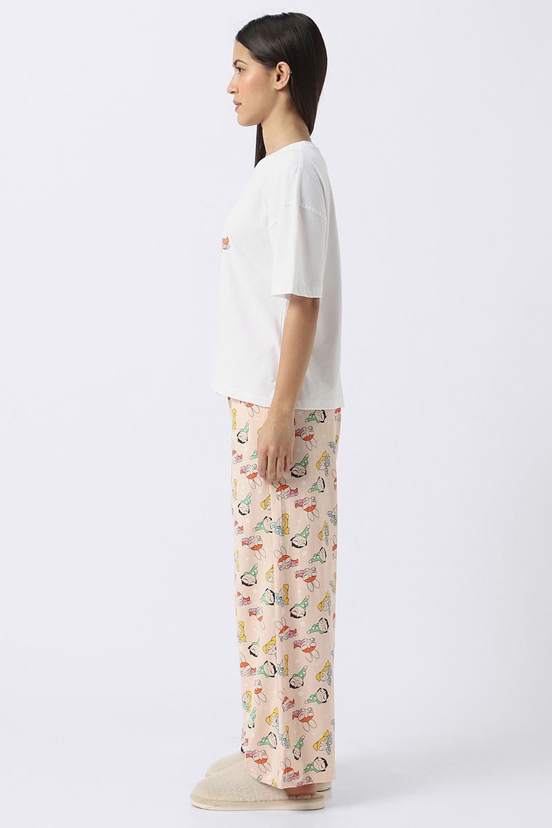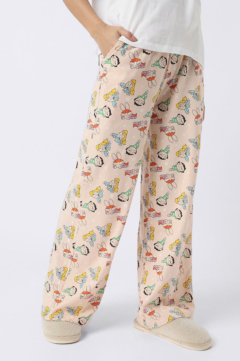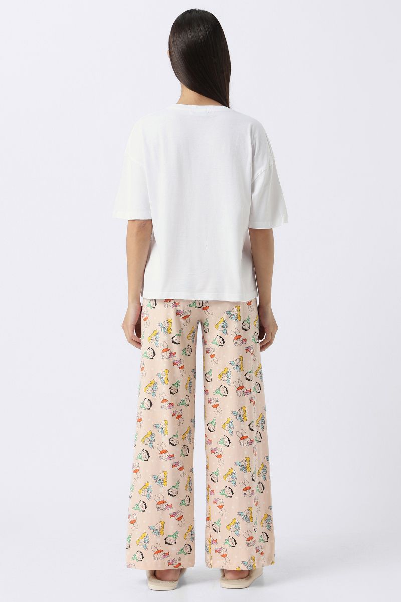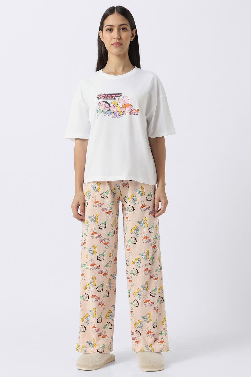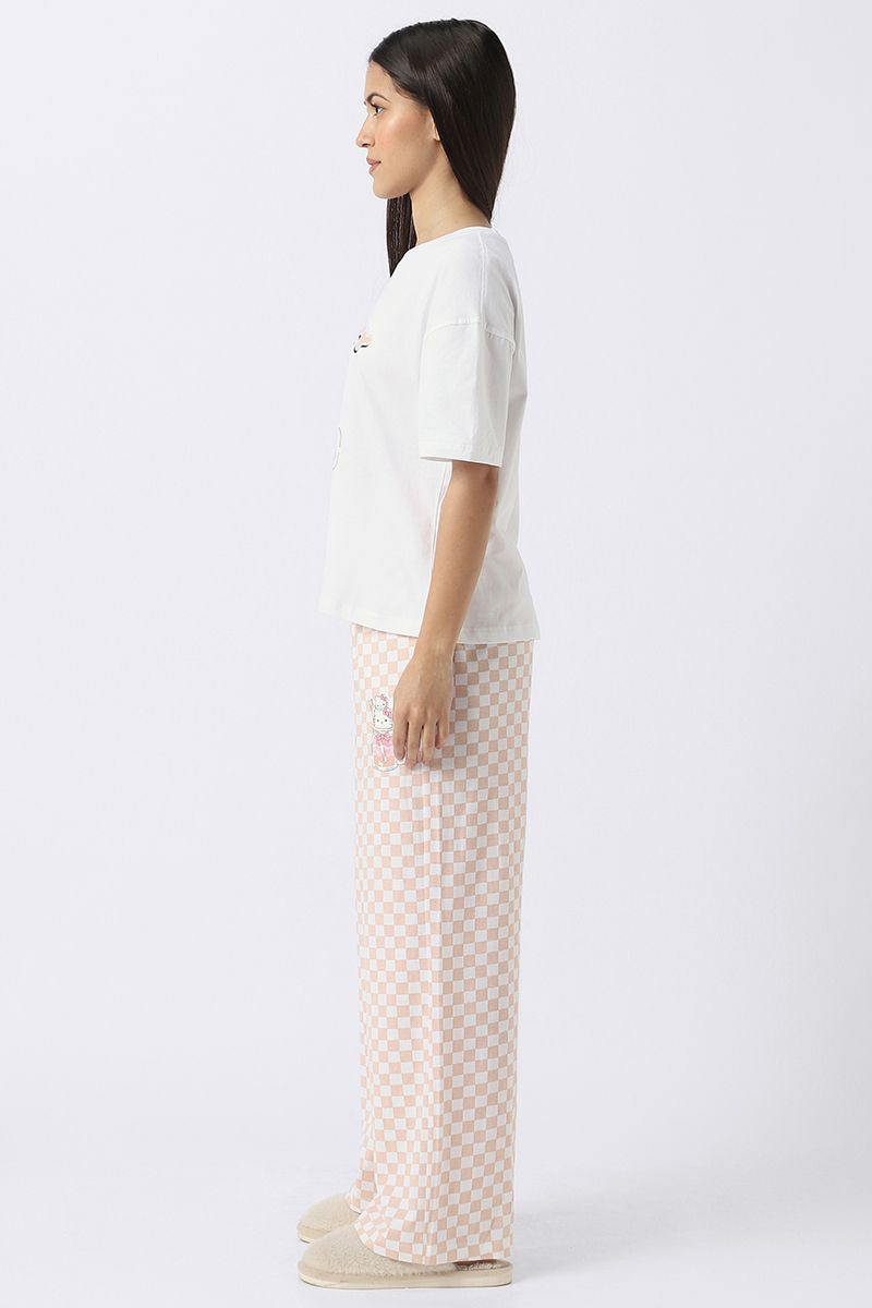 decorated with contrast colored striped pattern and a small print on one leg front side