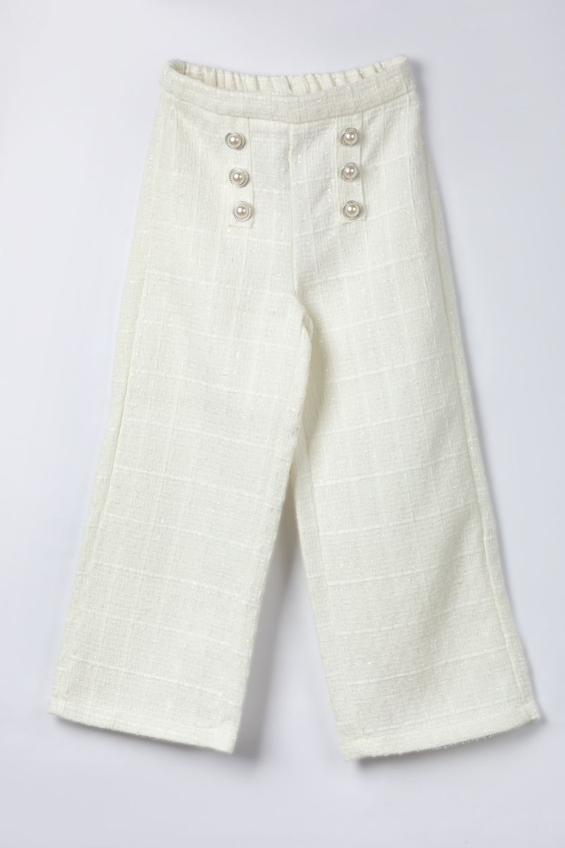 decorated with a solid colored textured pattern fabric and buttons details on the front side