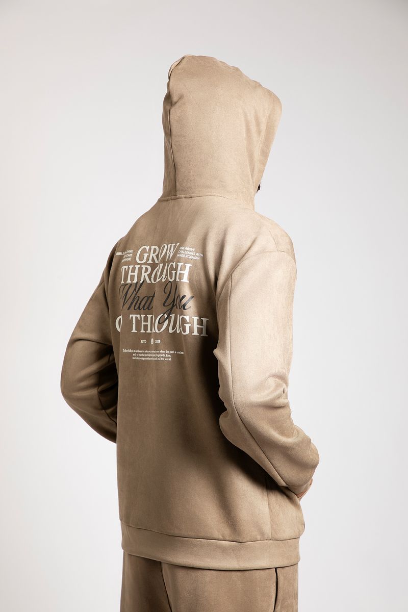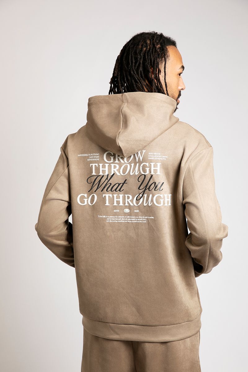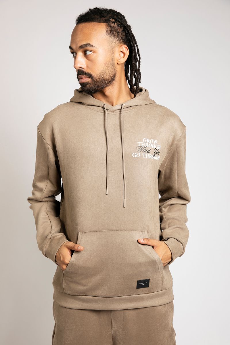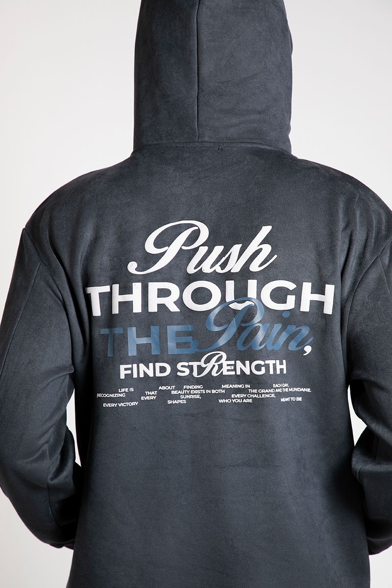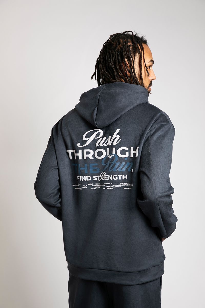 Mens hoodie featuring front and back text print adjustable hood and front kangaroo pocket stylish and comfortable choice for everyday casual wear