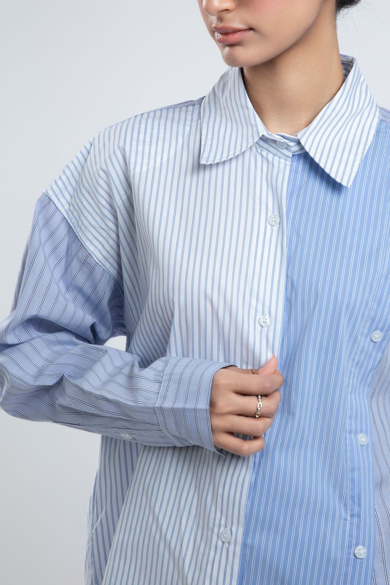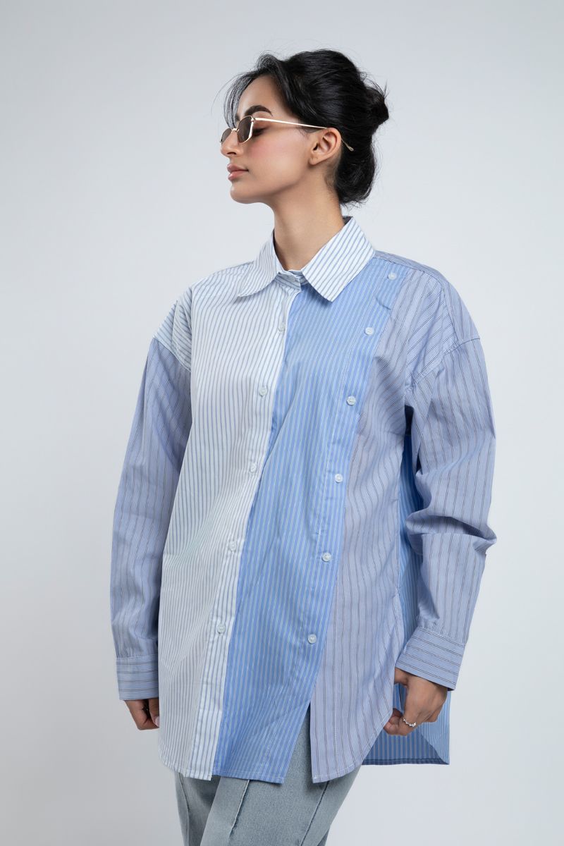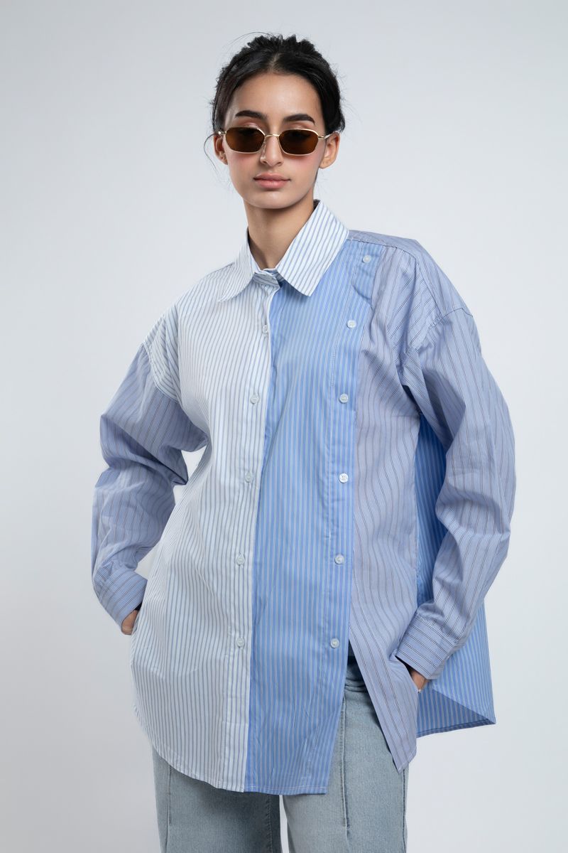 Urban Oversized Striped Shirt With Double Button Front