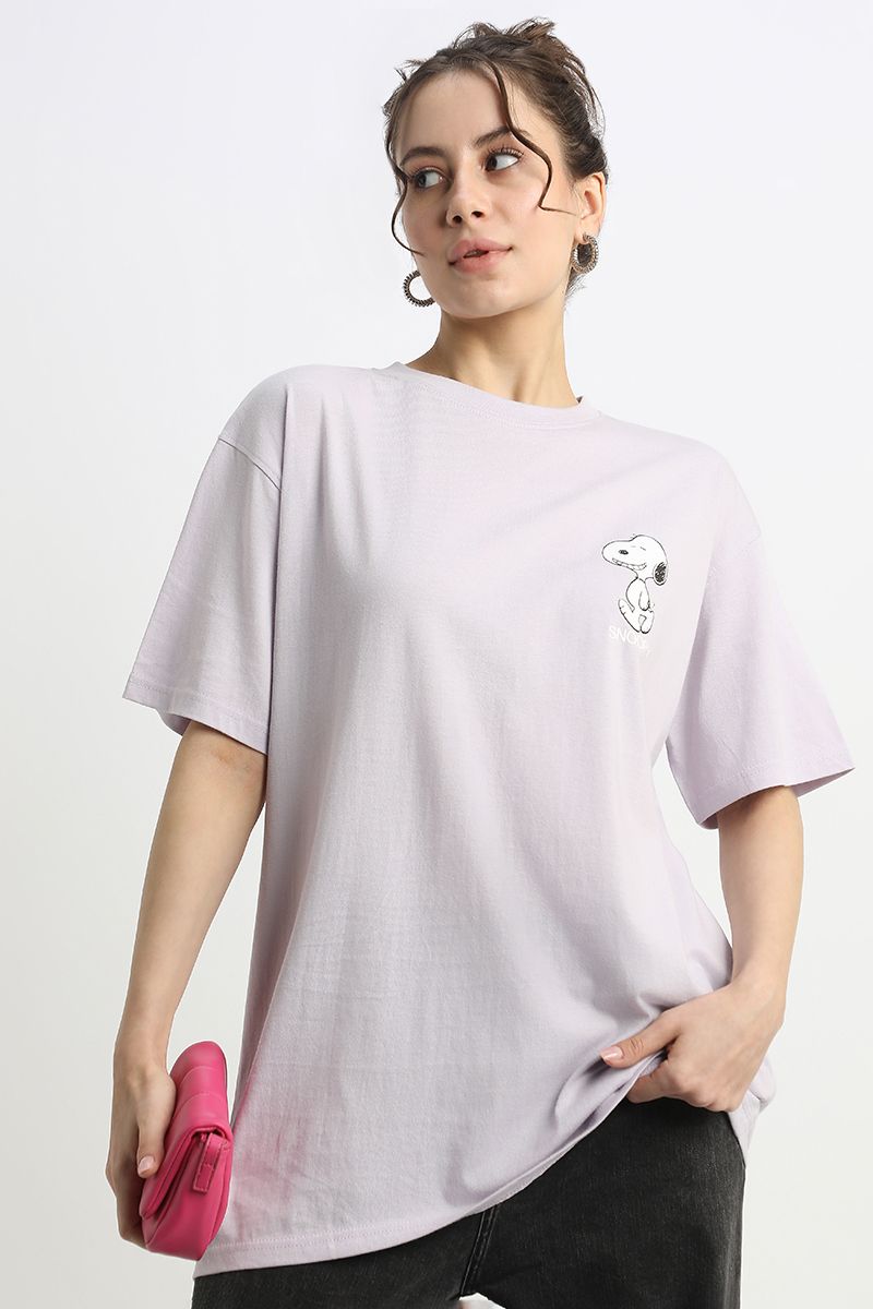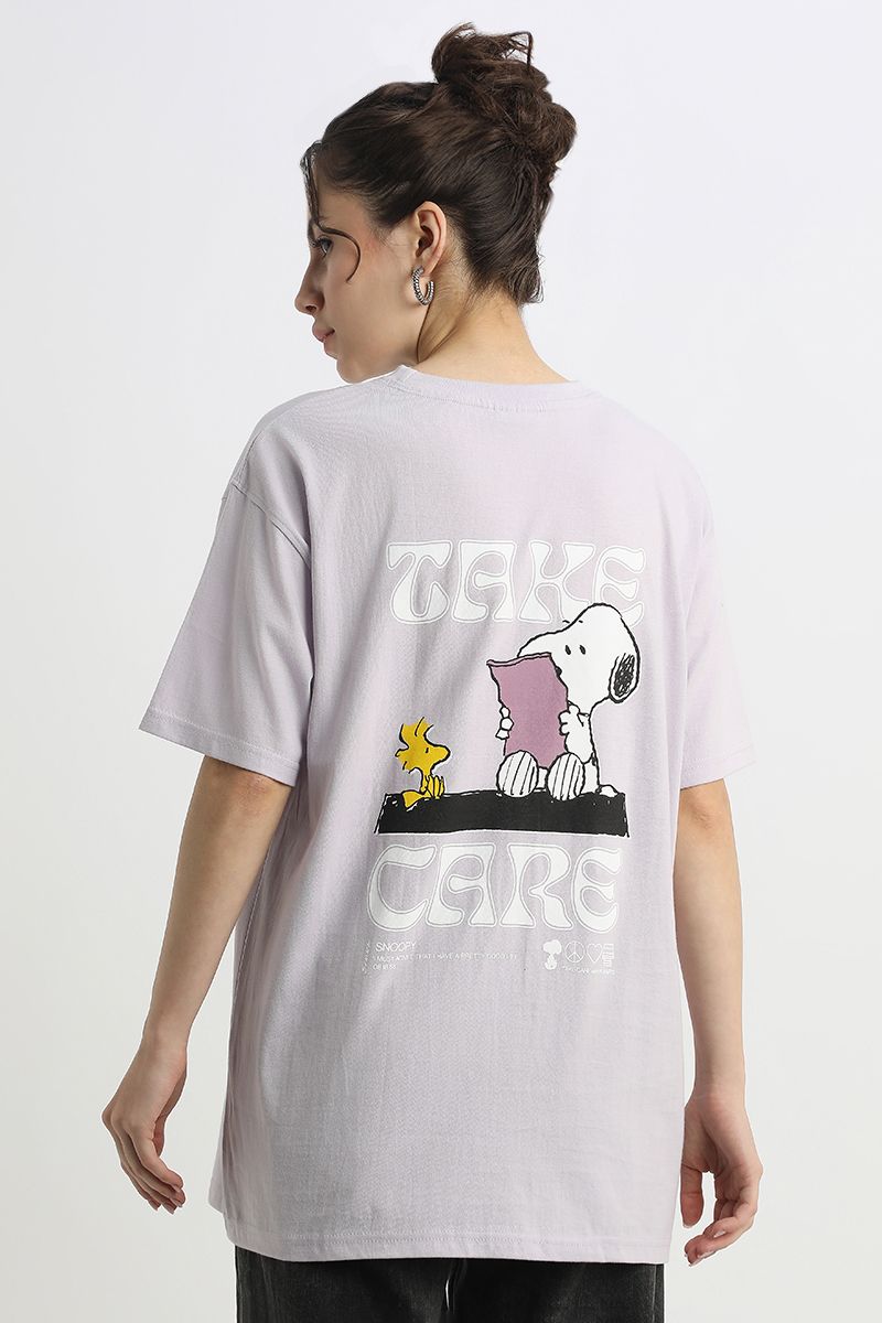 Women'S Short Sleeve T-Shirt With Front And Back Snoopy Prints