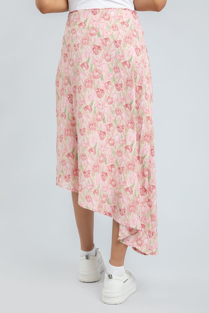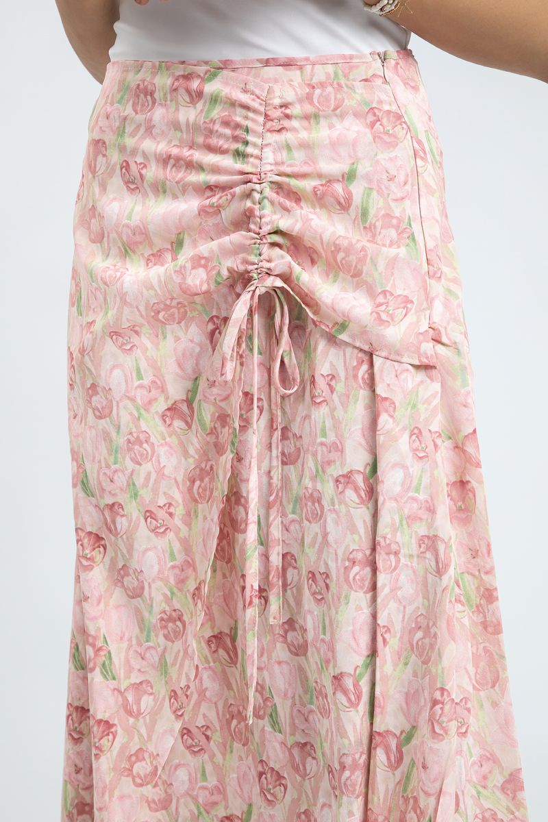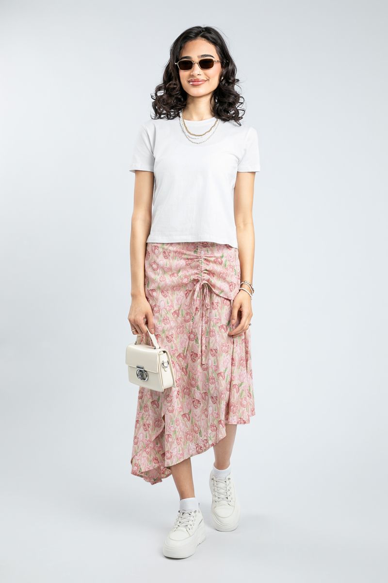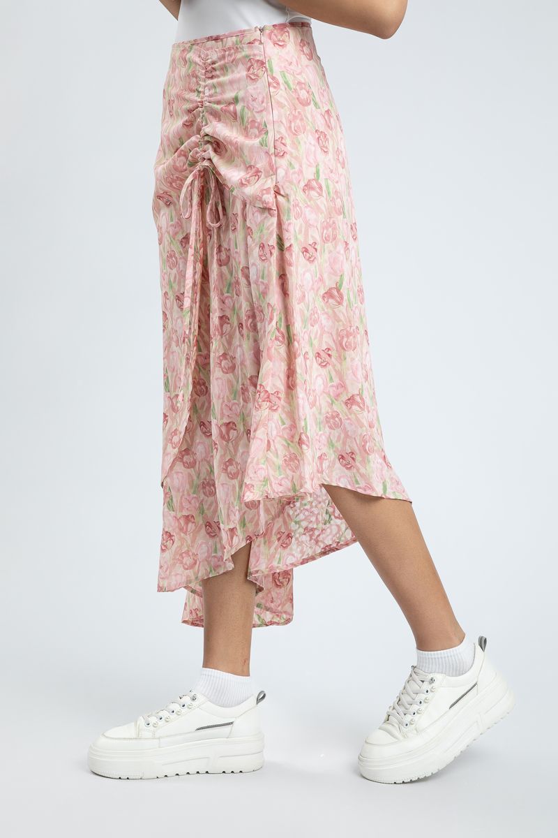 Women Asymmetric Floral Skirt With Drawstring Detail