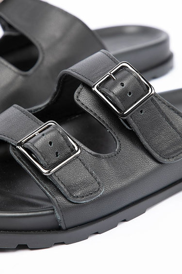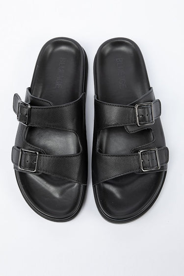 decorated with a double strap belts on vamp
