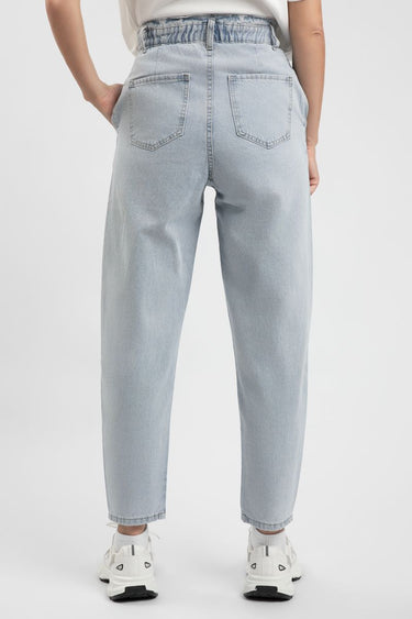 Women'S Denim Pants - Solid Color, Mom Fit, High Elastic Waist