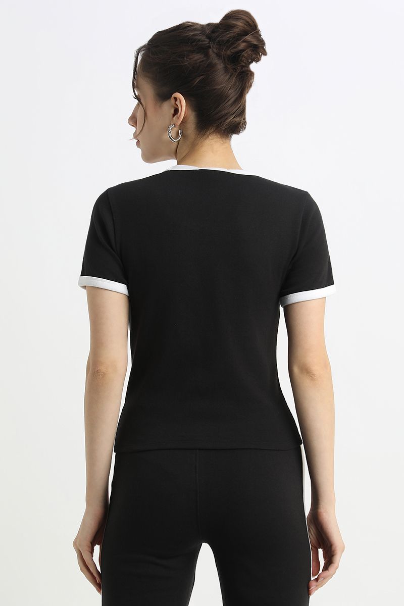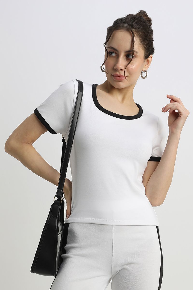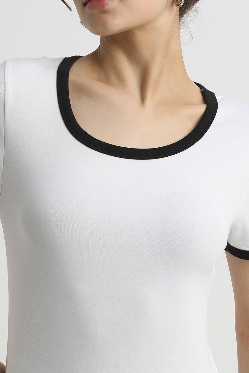 Womens Elevated Basic T-Shirt Short Sleeves with Contrast Edge Details