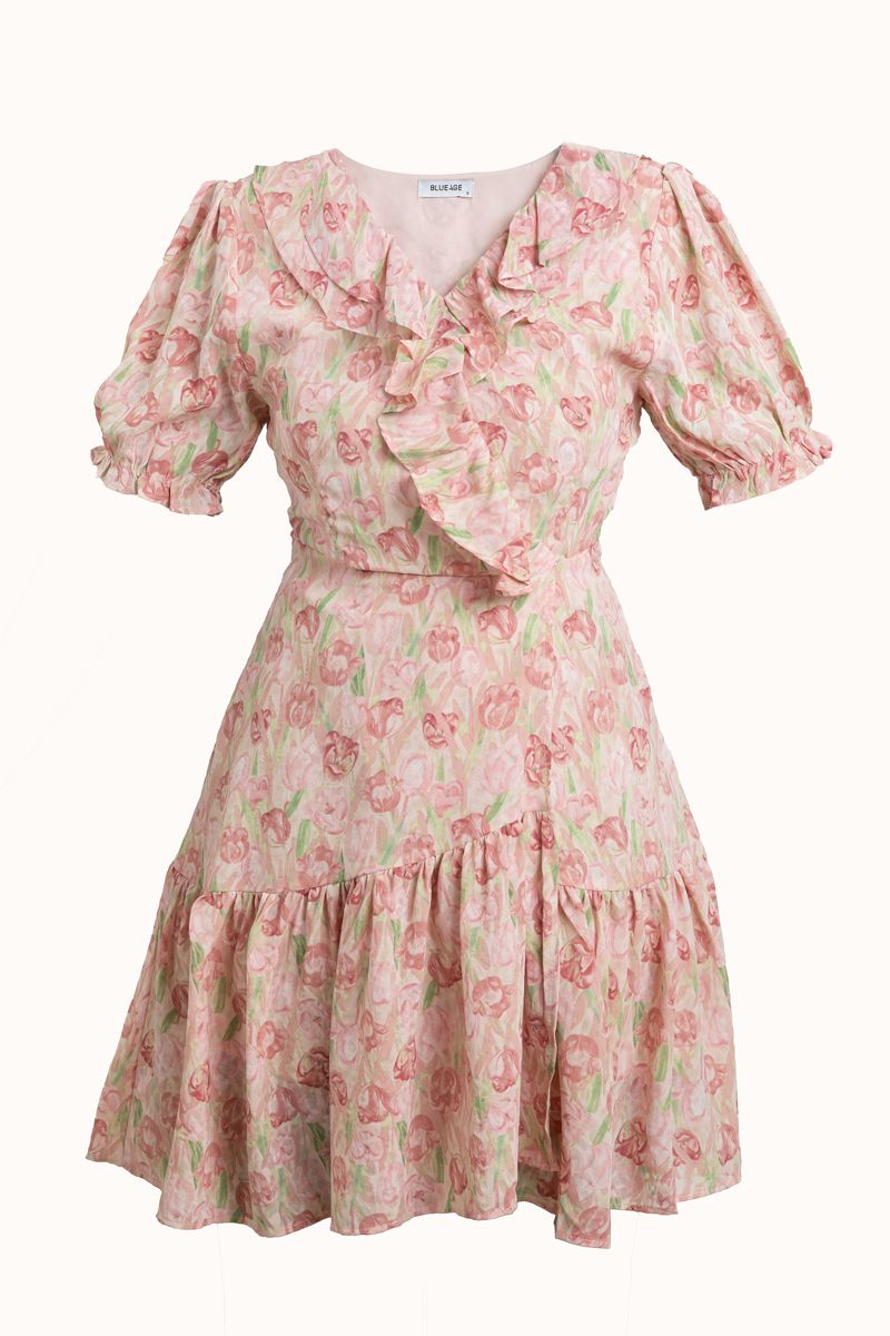 Step into the season with charm in this women’s summer dress, designed with an all-over floral print and soft, breathable fabric. Featuring short sleeves, delicate ruffled details, and a flattering wrap-style silhouette with a V neckline  perfect for sunny days and casual gatherings.