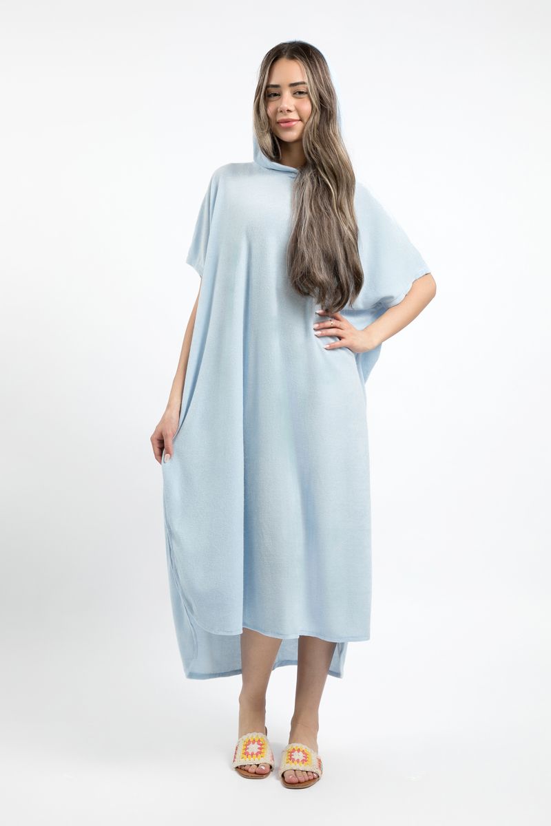 Elevate your casual and loungewear collection with this chic Women's Flowy Hooded Longline Lounge Dress