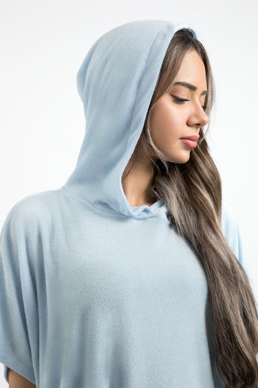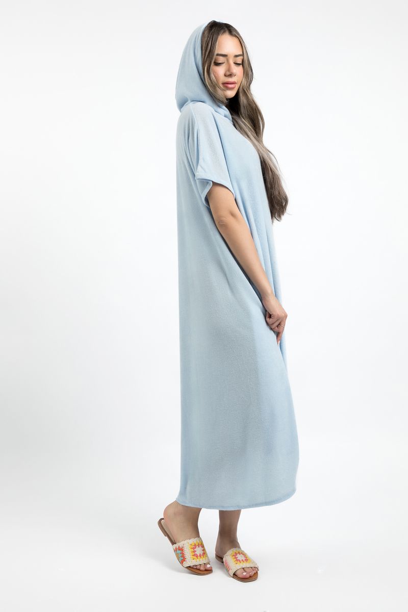 Women'S Short Sleeves Flowy Hooded Longline Lounge Dress