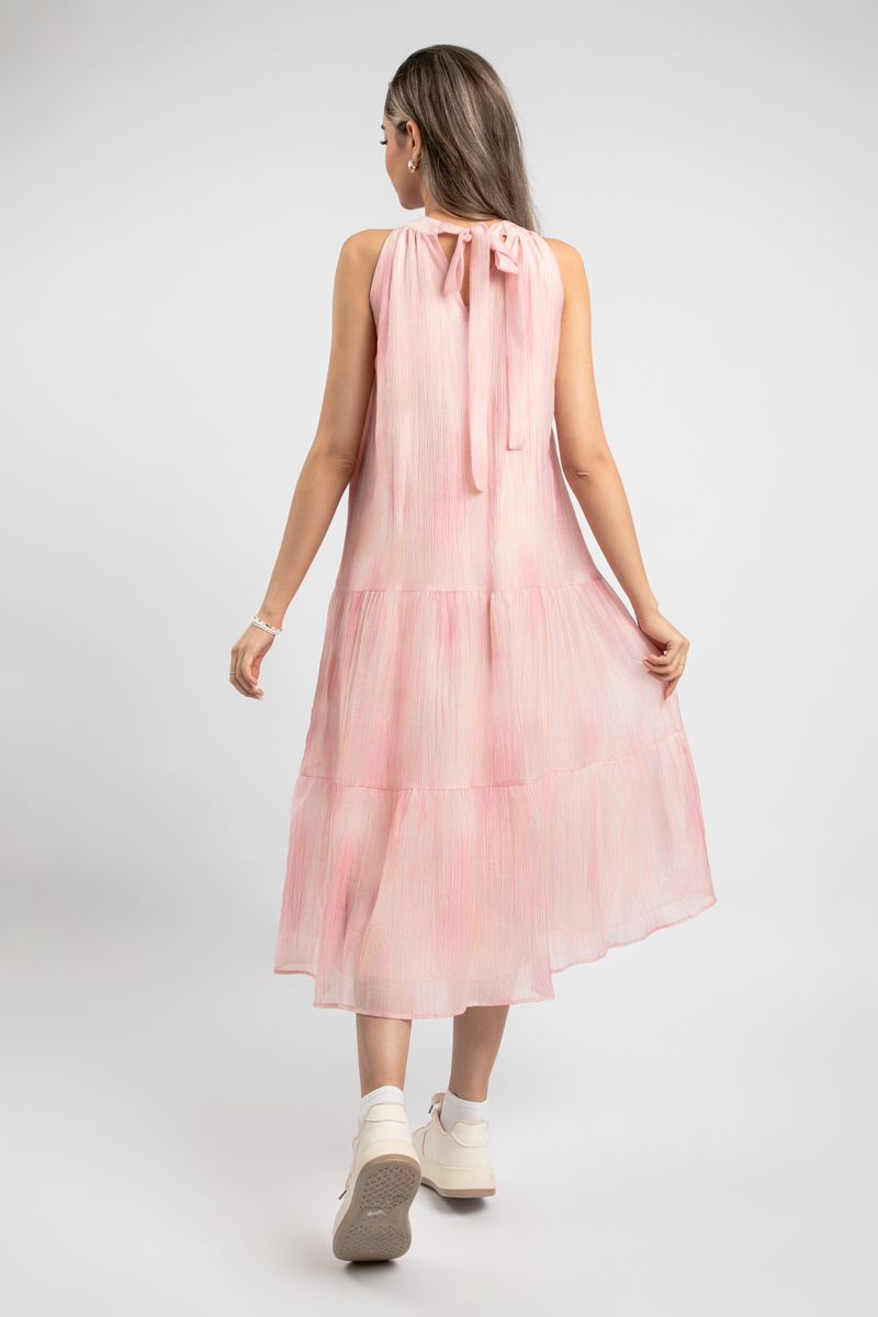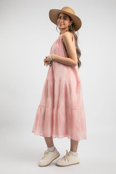 Featuring layered details at the lower hem, this dress flows beautifully with every step—ideal for sunny days and relaxed gatherings