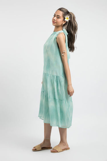 Featuring layered details at the lower hem, this dress flows beautifully with every stepâ€â€ideal for sunny days and relaxed gatherings
