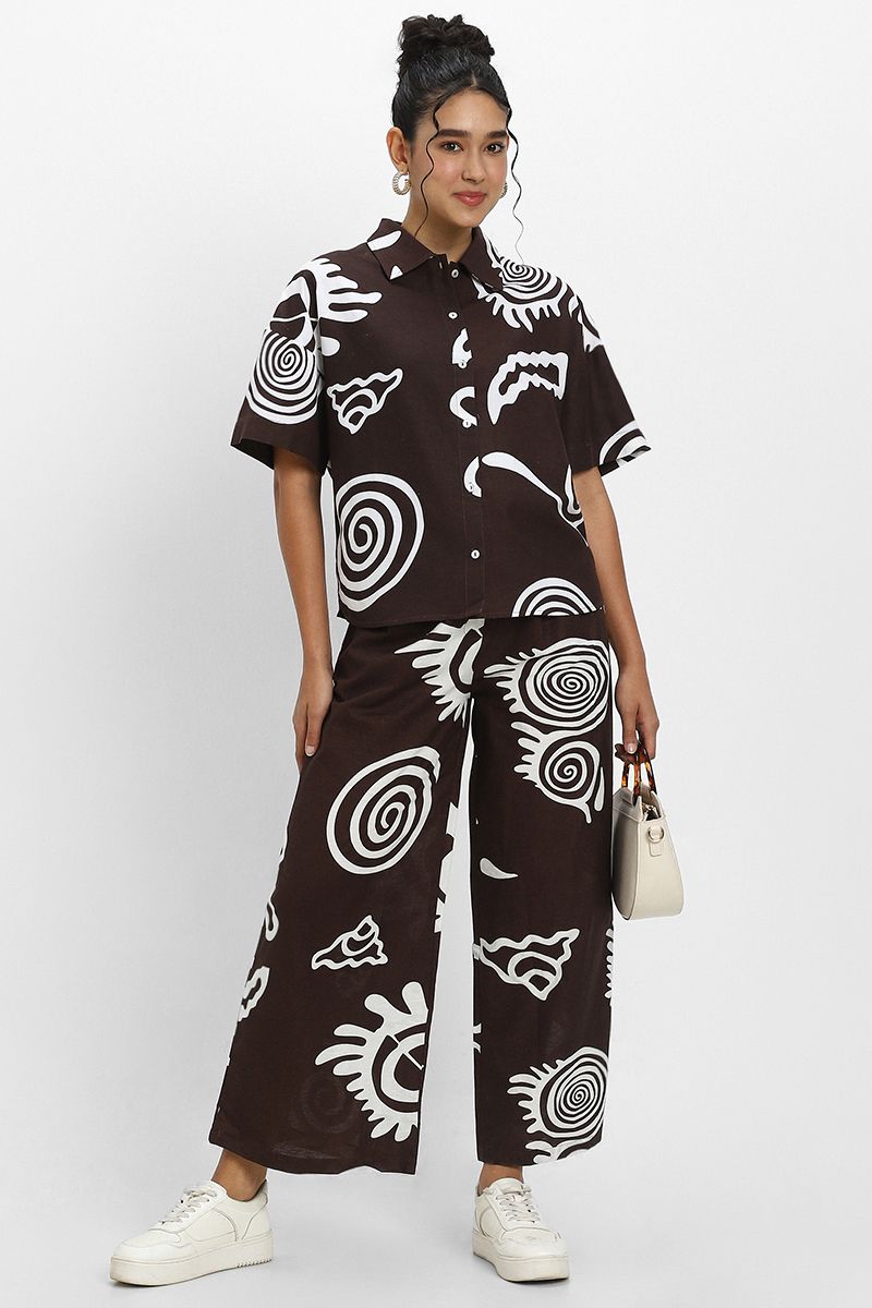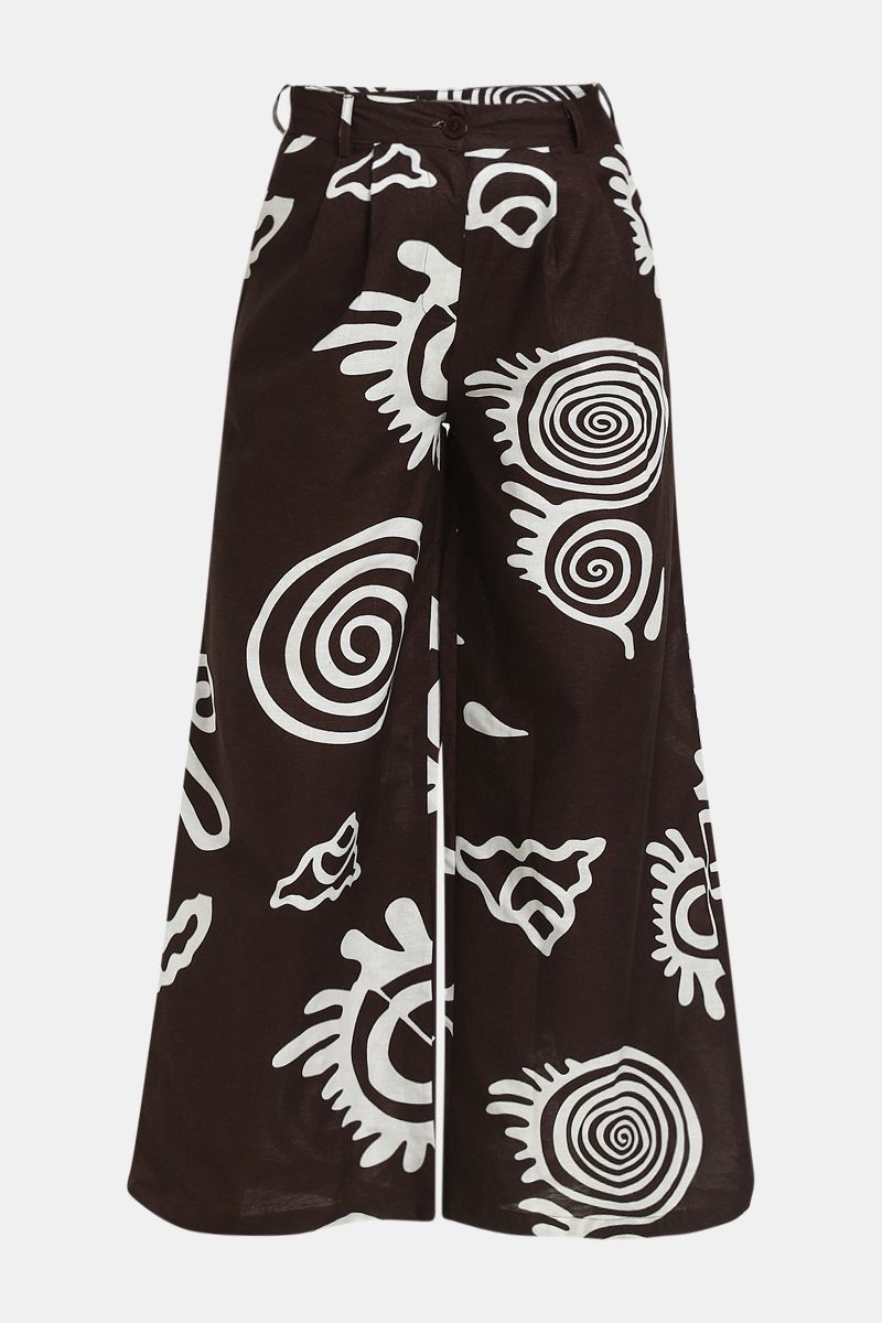 Women'S Wide Leg Flowing Summery Pants With Contrast Print