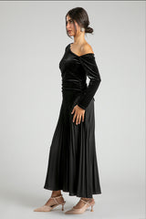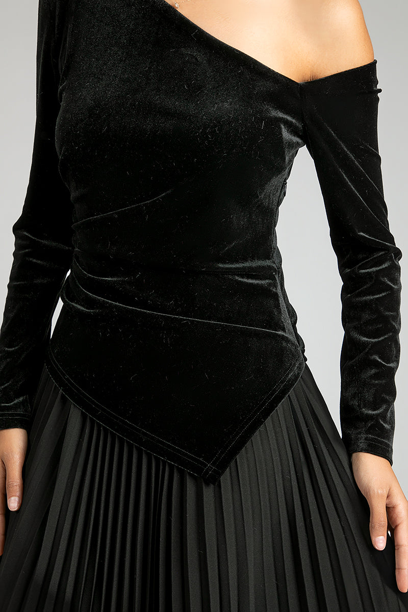 One Shoulder Velvet Pleated Dress