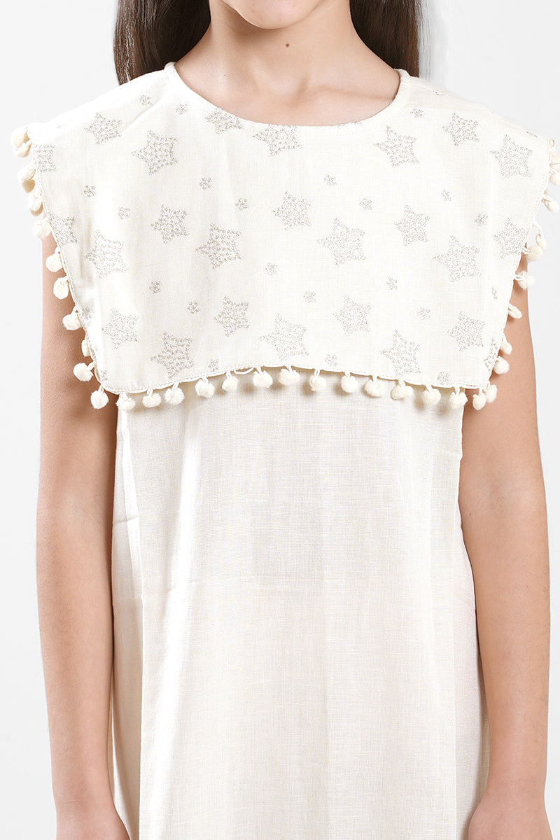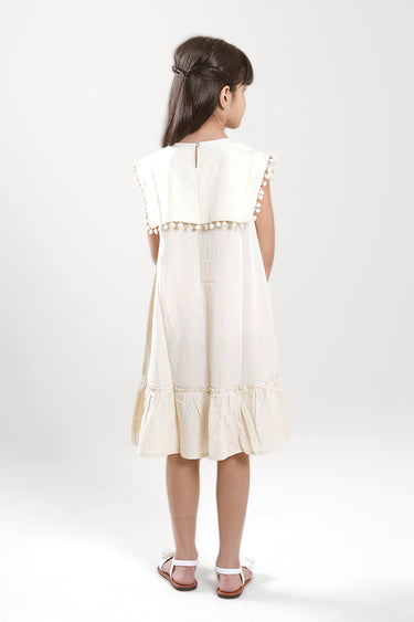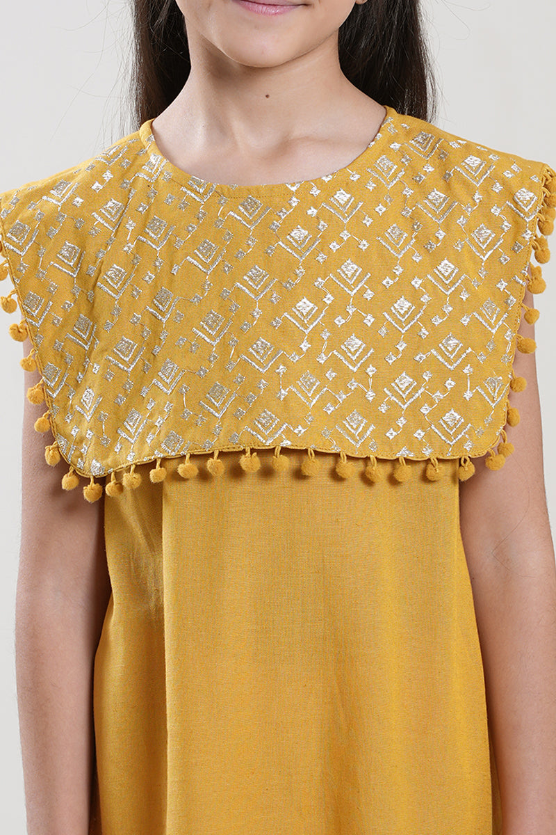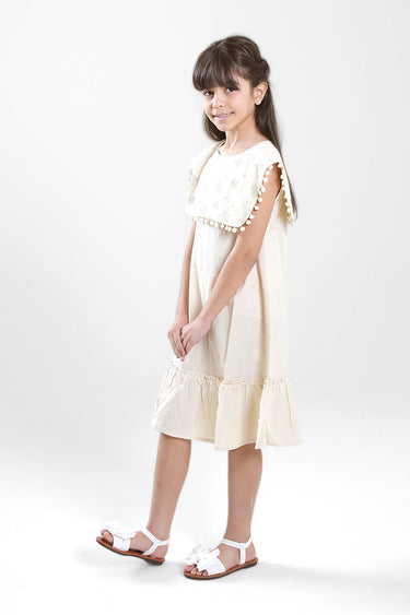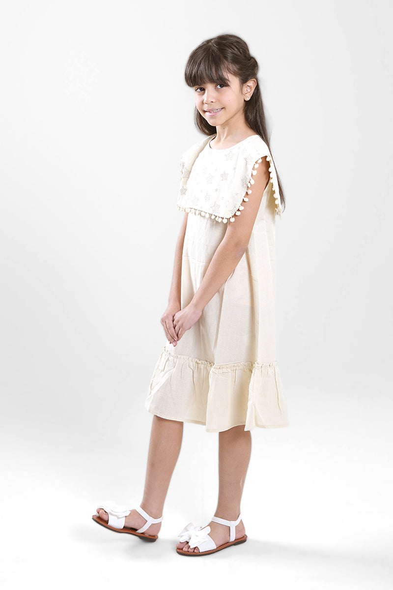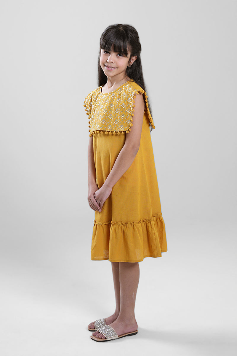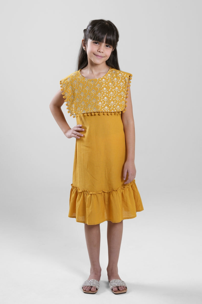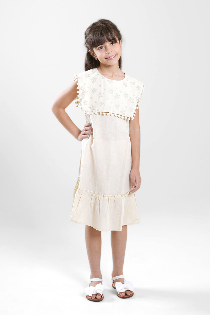 A girls’ casual dress designed with a relaxed fit for everyday comfort. Features a sleeveless silhouette with a decorative overlay panel at the top and a softly gathered hem for easy movement. Lightweight and breathable, making it suitable for daily wear, outings, and casual occasions.
