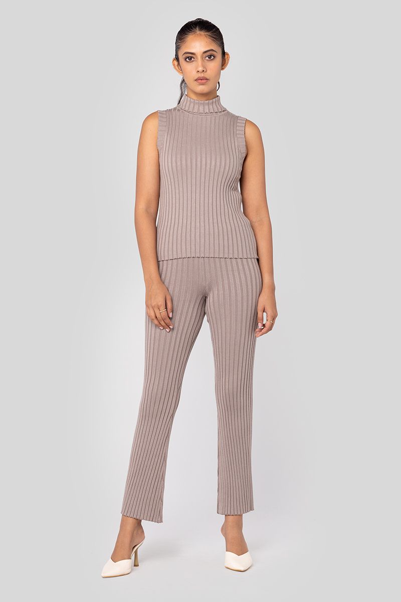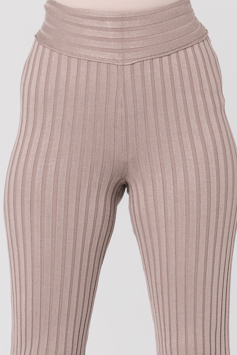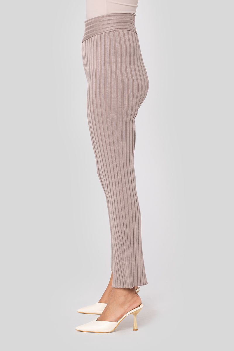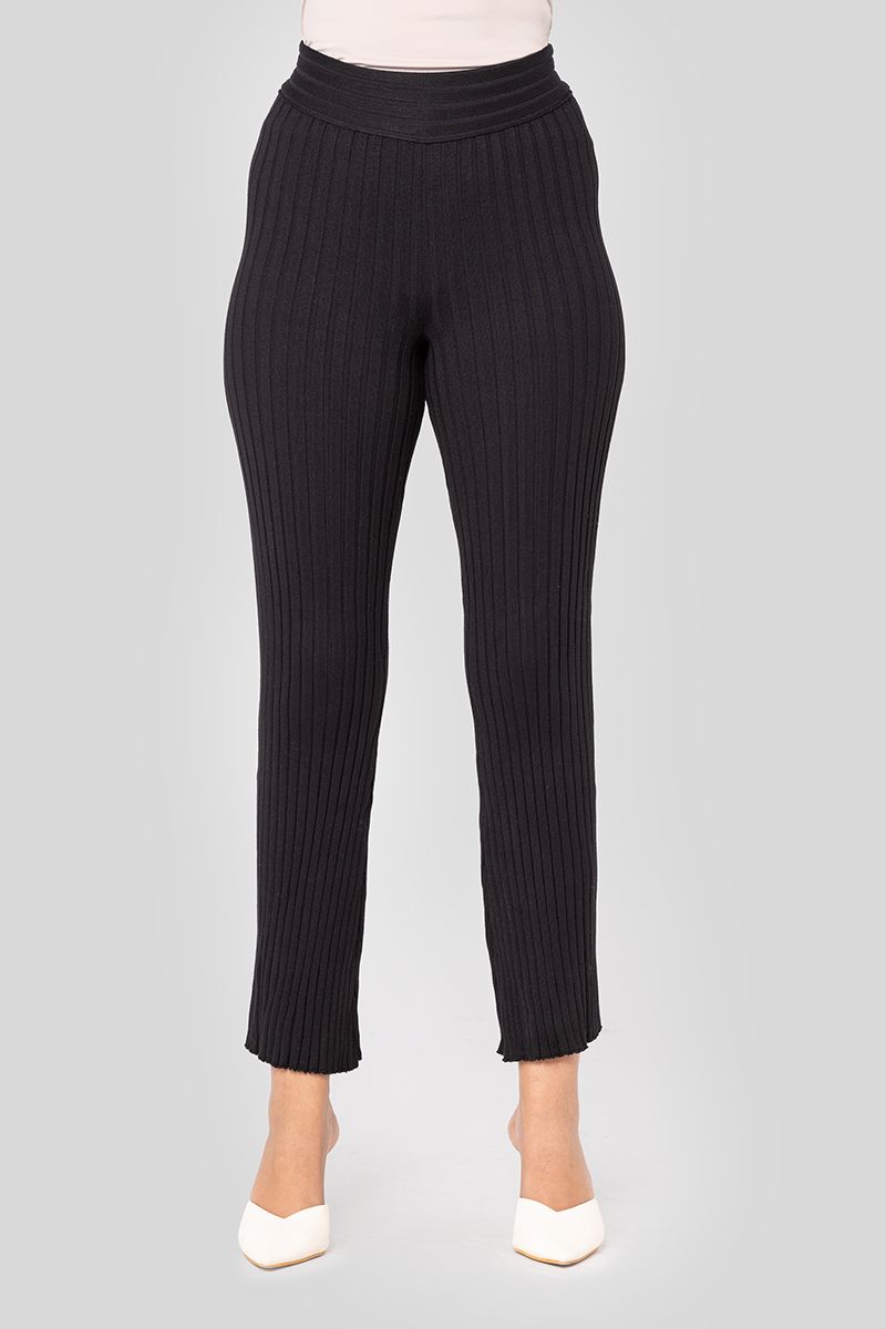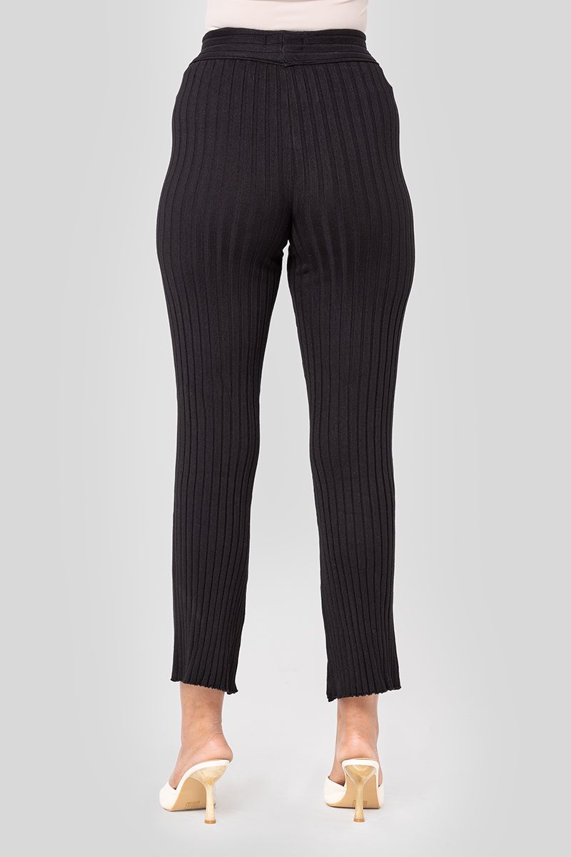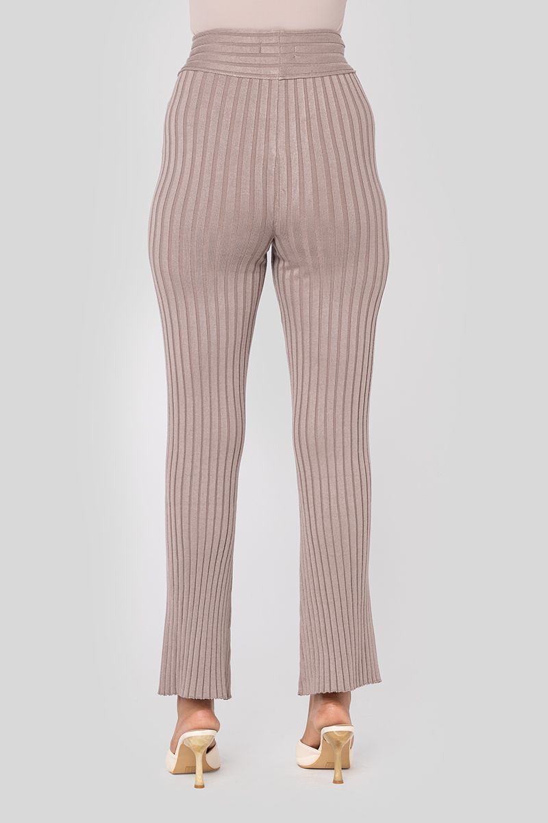 Knitted slim fit pants featuring a ribbed texture and a flattering high waistband. Designed with a comfortable stretch for a sleek silhouette, making it a versatile choice for both casual and chic looks.