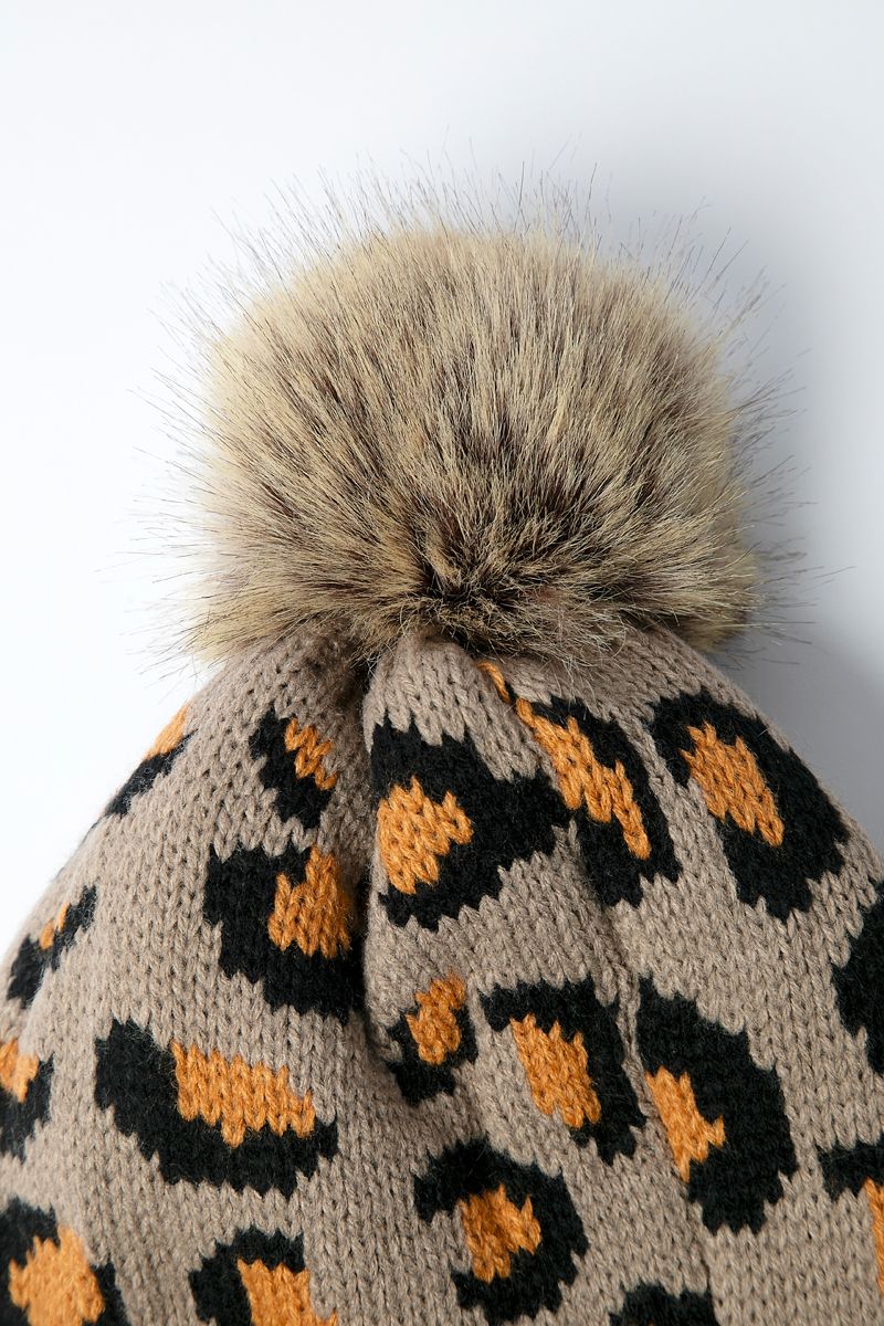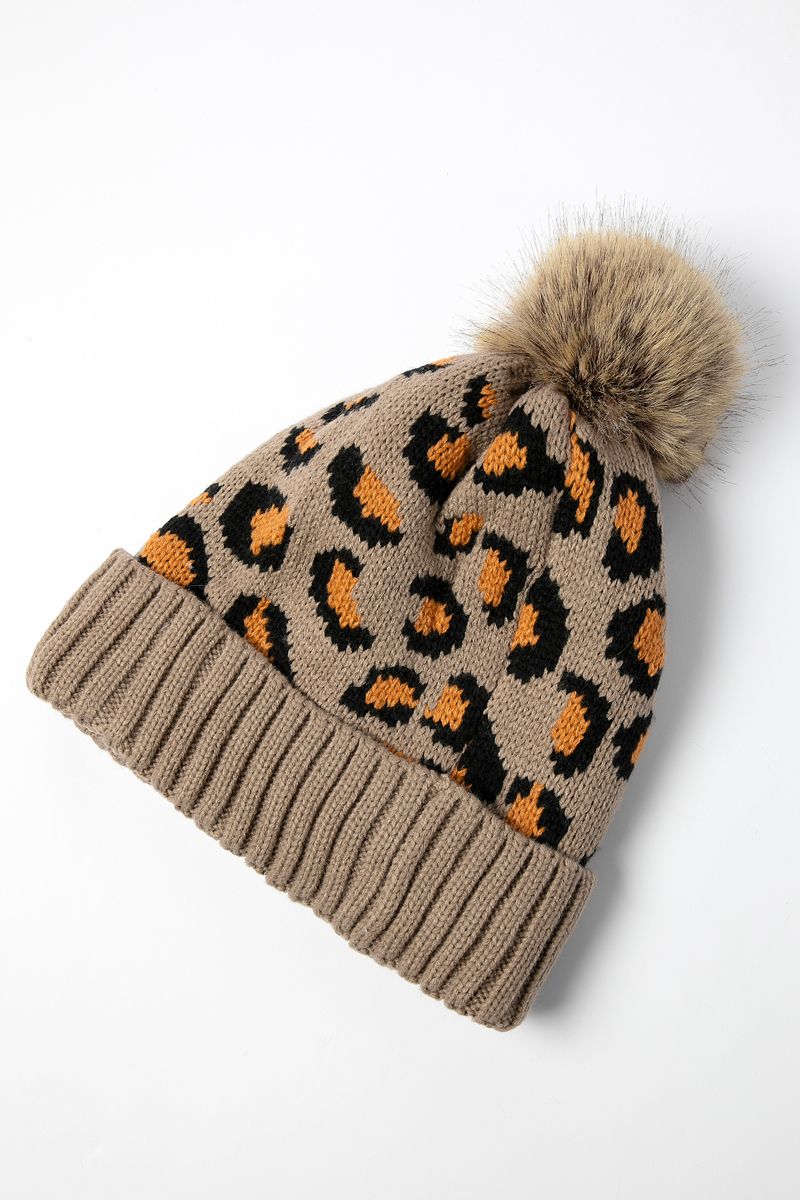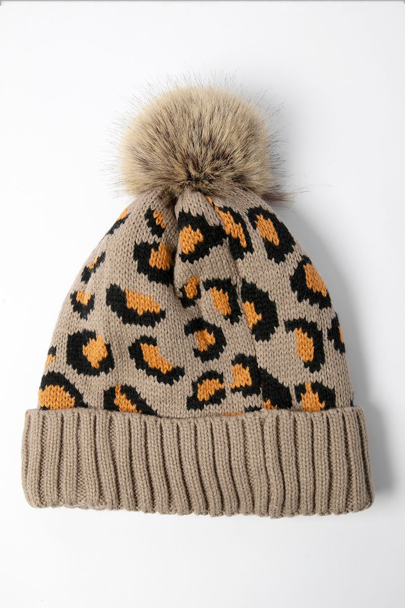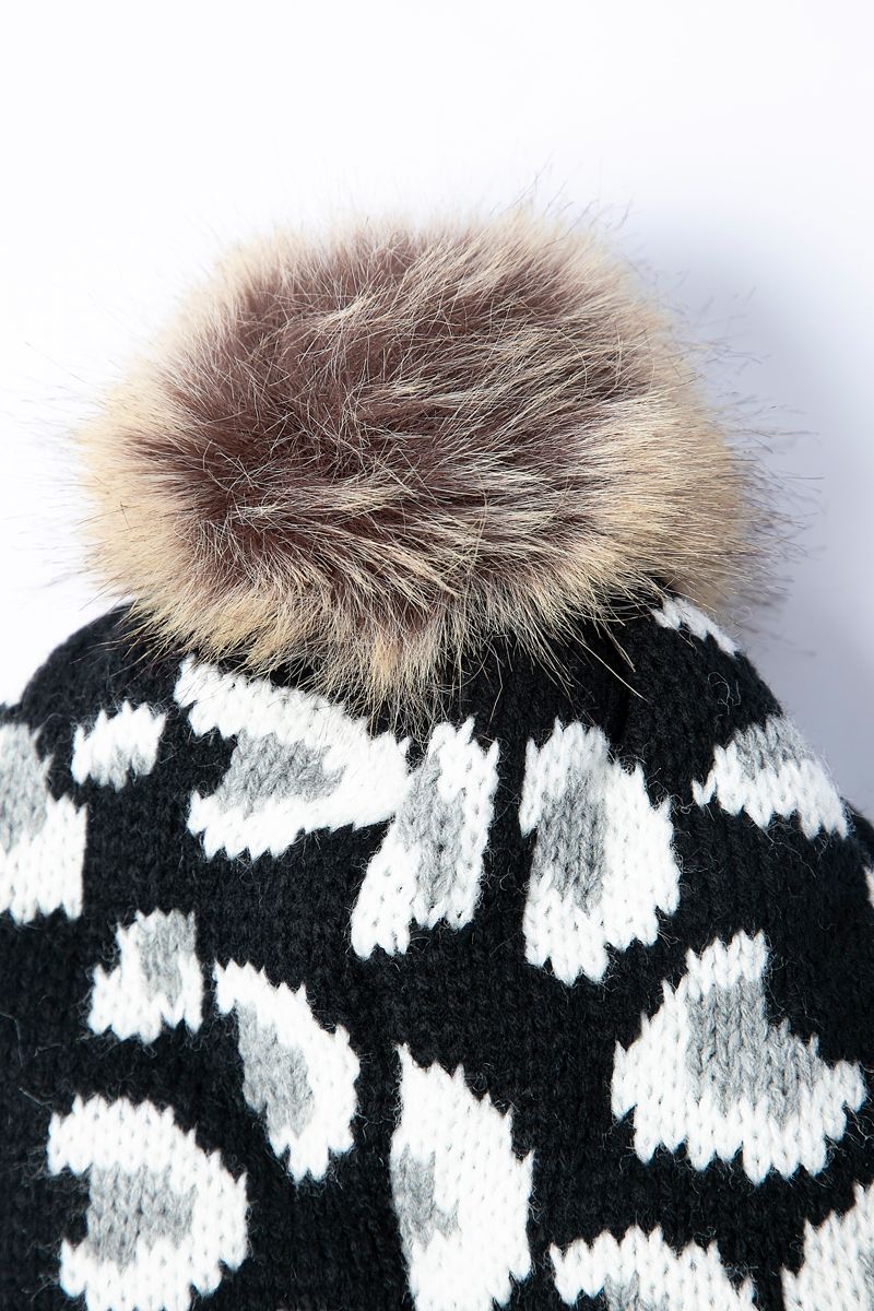 Cozy knitted beanie featuring a bold patterned design with a playful faux fur pom pom on top and a soft inner lining for added warmth and comfort