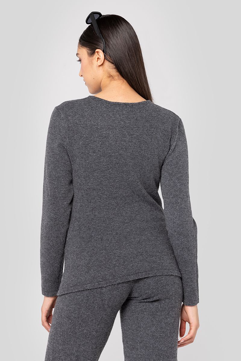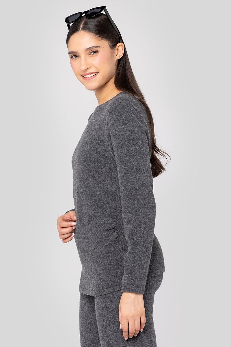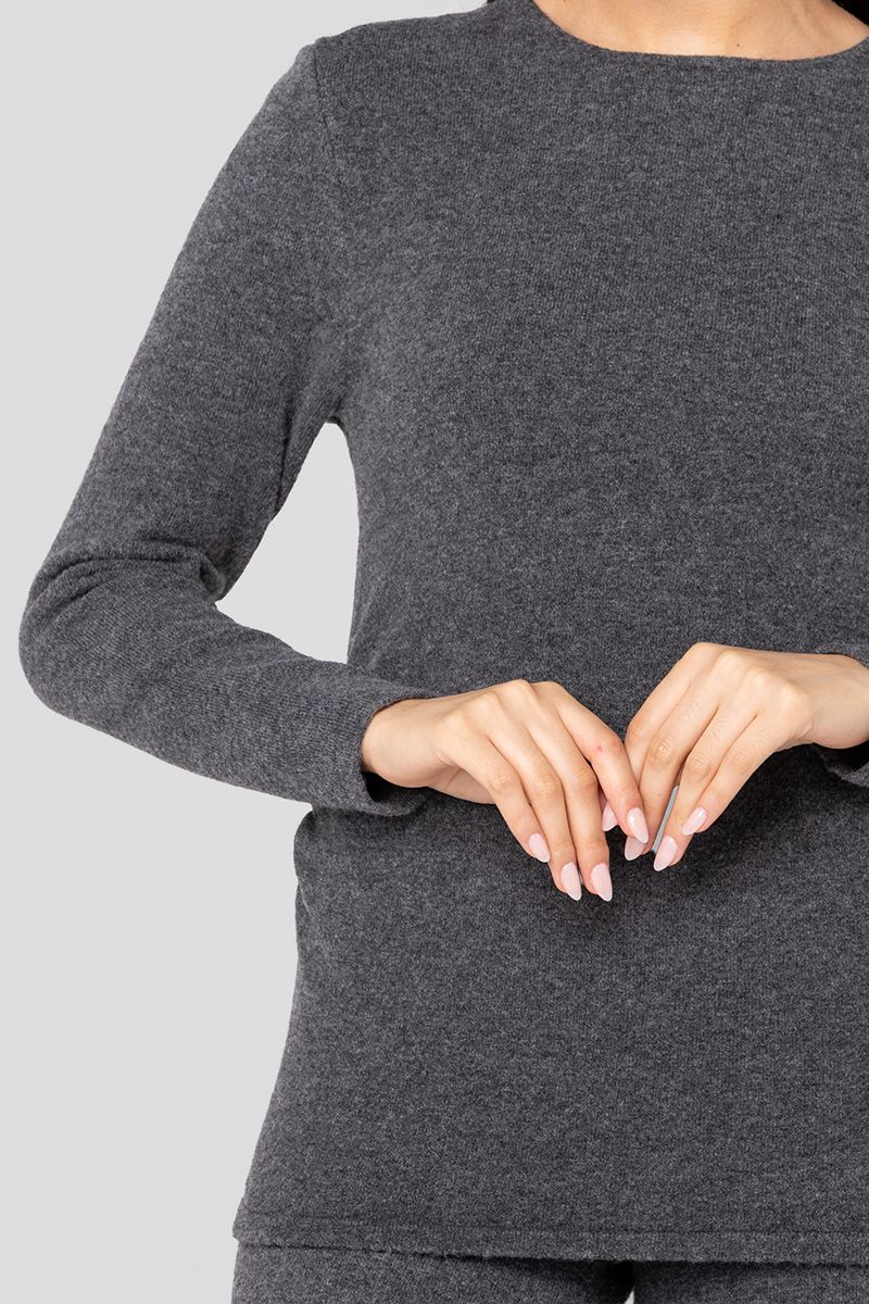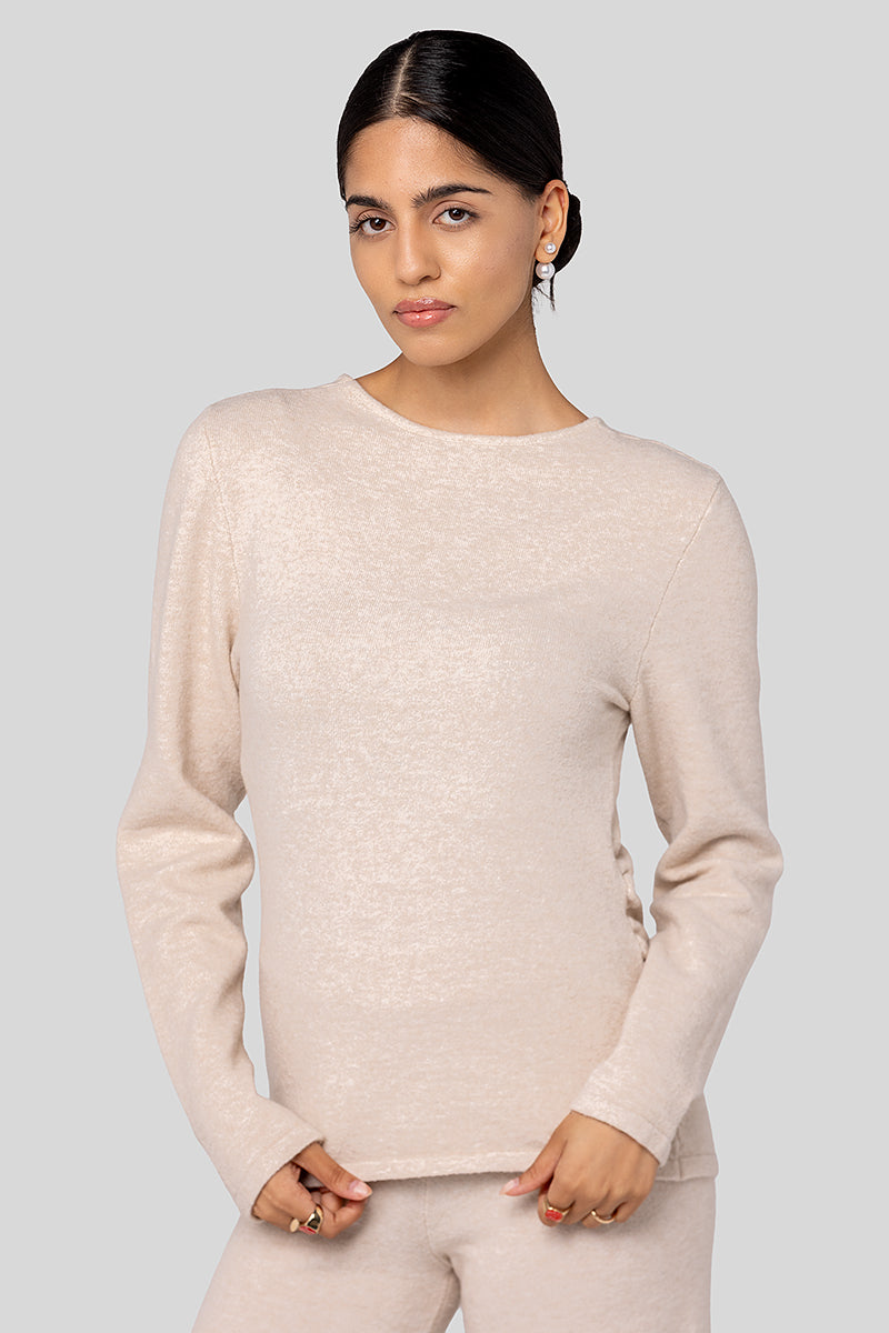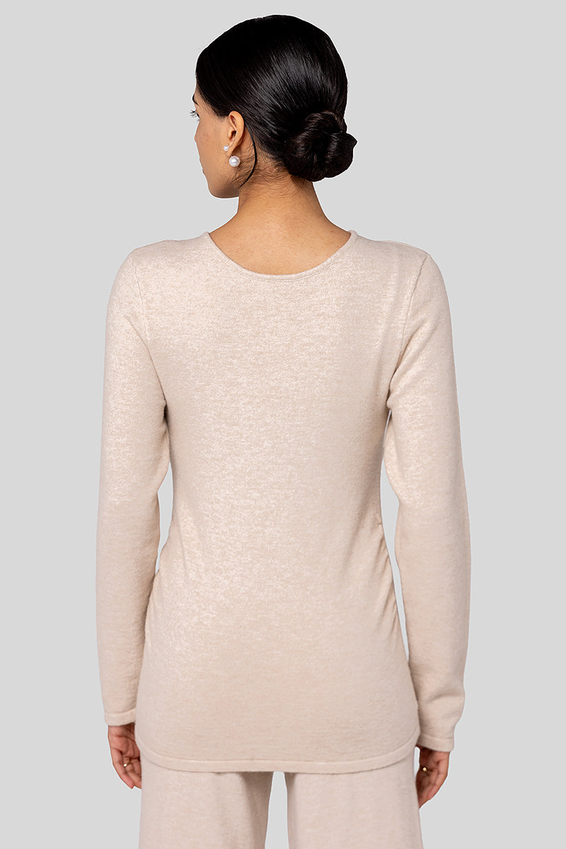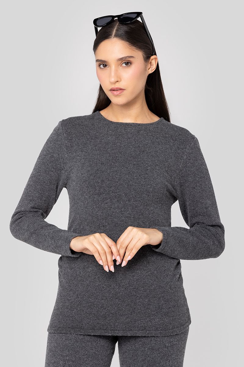 Soft blouse with a simple and elegant design featuring a round neckline and long sleeves designed for comfort and versatility perfect for layering and everyday casual wear