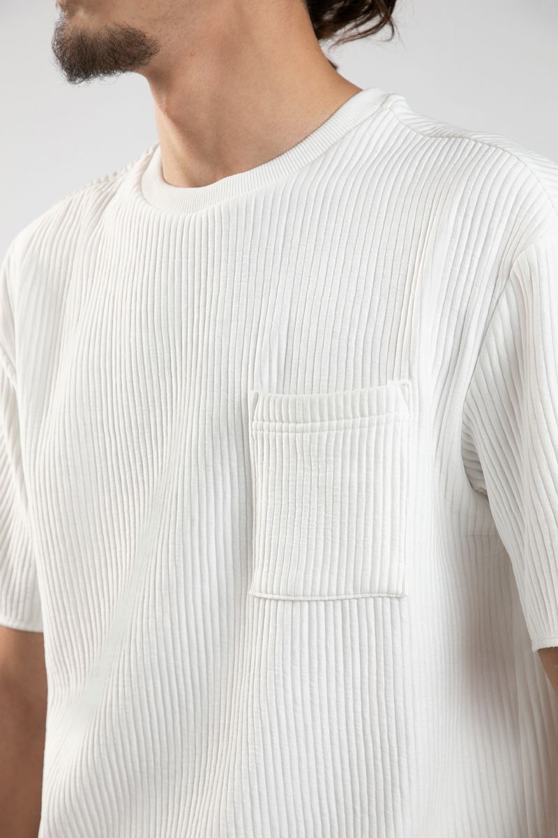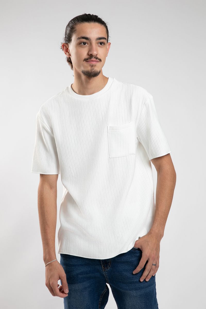 Keep it simple and stylish with this short sleeve men’s T-shirt, designed in a solid color with a ribbed texture for a subtle, modern touch. Featuring a classic crew neck and a practical front pocket, this essential tee blends comfort with everyday versatility — perfect for layering or wearing on its own