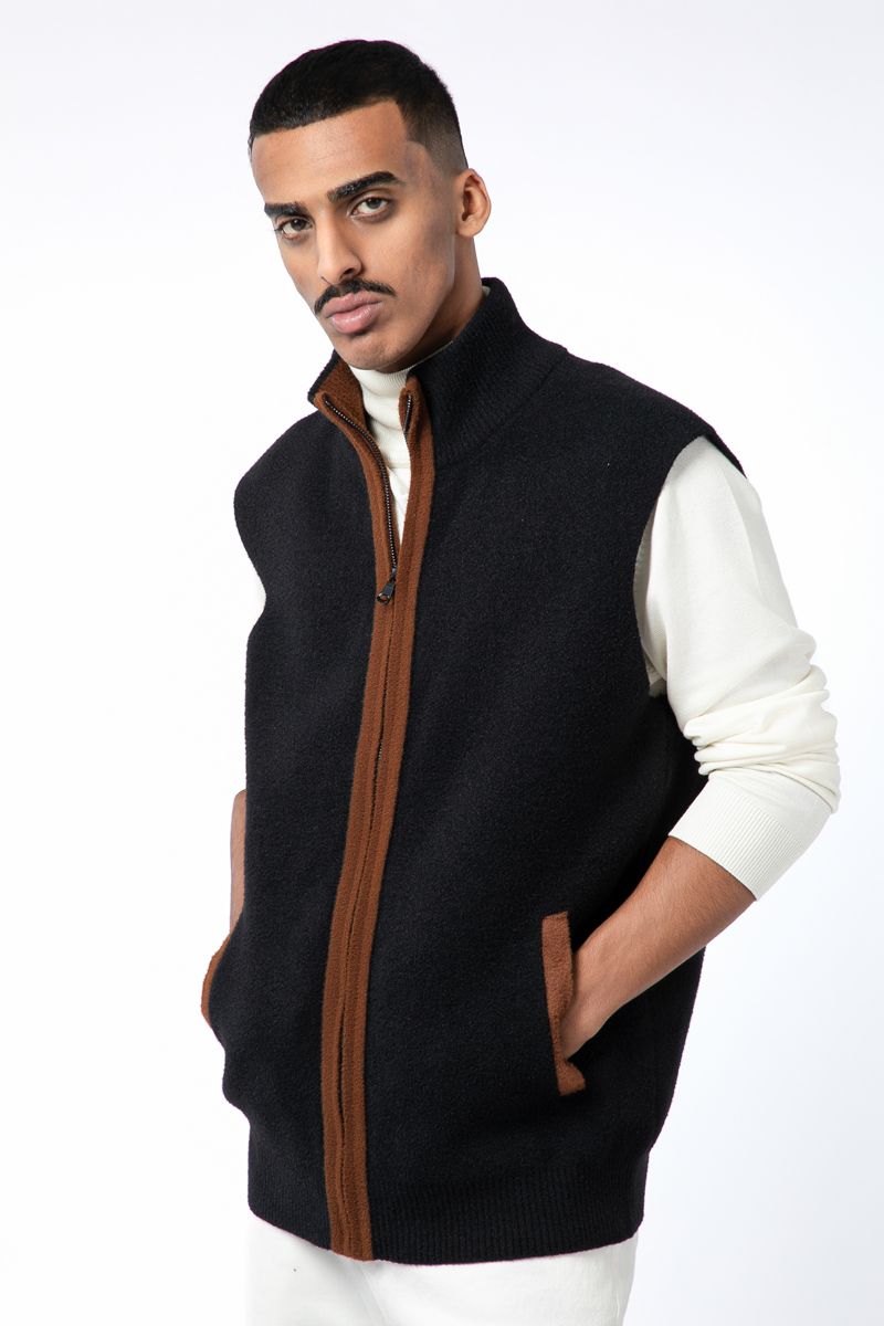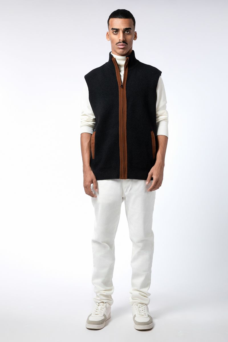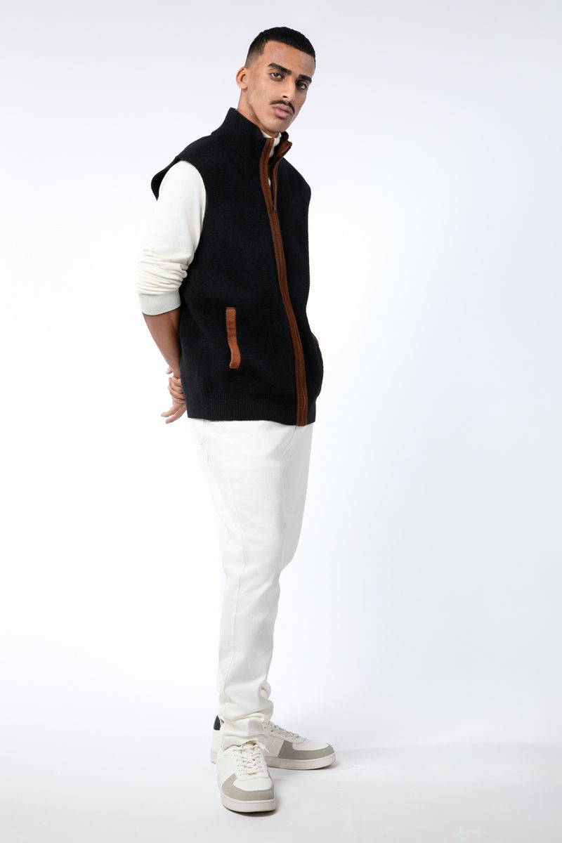 zip through men knitted vest