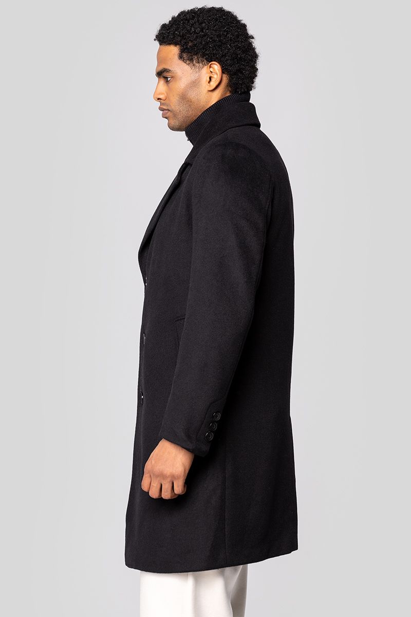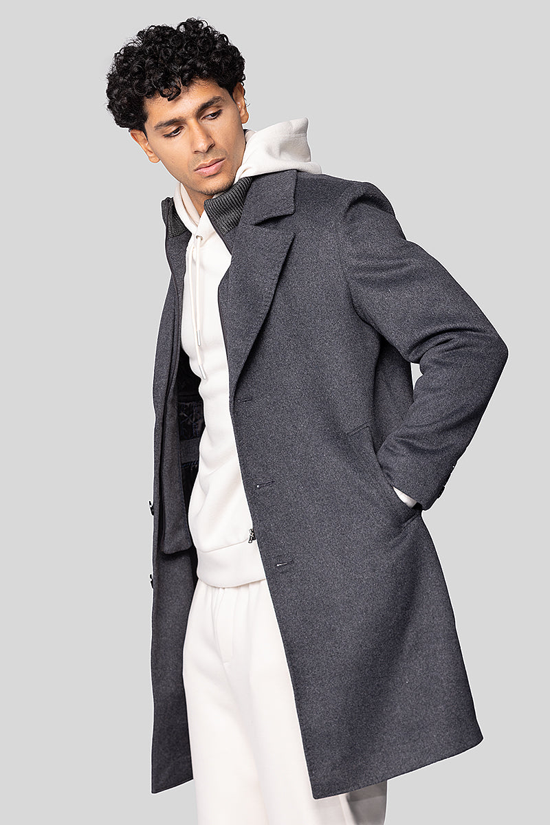 Men coat crafted from soft wool blend fabric designed with a classic collar and front button closure featuring side pockets for practicality offers both warmth and sophistication making it ideal for formal and casual winter looks