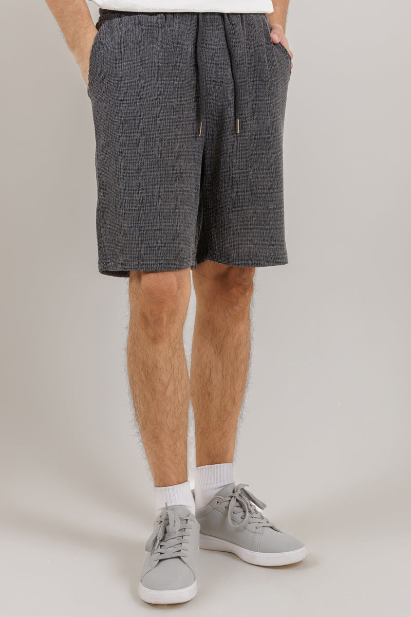 Men’s casual shorts made from lightweight textured fabric for breathable, all-day comfort. Designed with an elastic waistband and adjustable drawstring to ensure a flexible and secure fit. Features side pockets for added practicality and a relaxed cut that allows easy movement. Ideal for everyday wear, casual outings, and warm-weather styling.