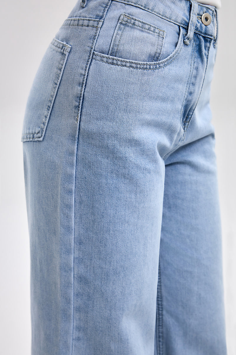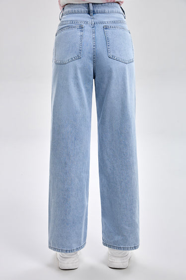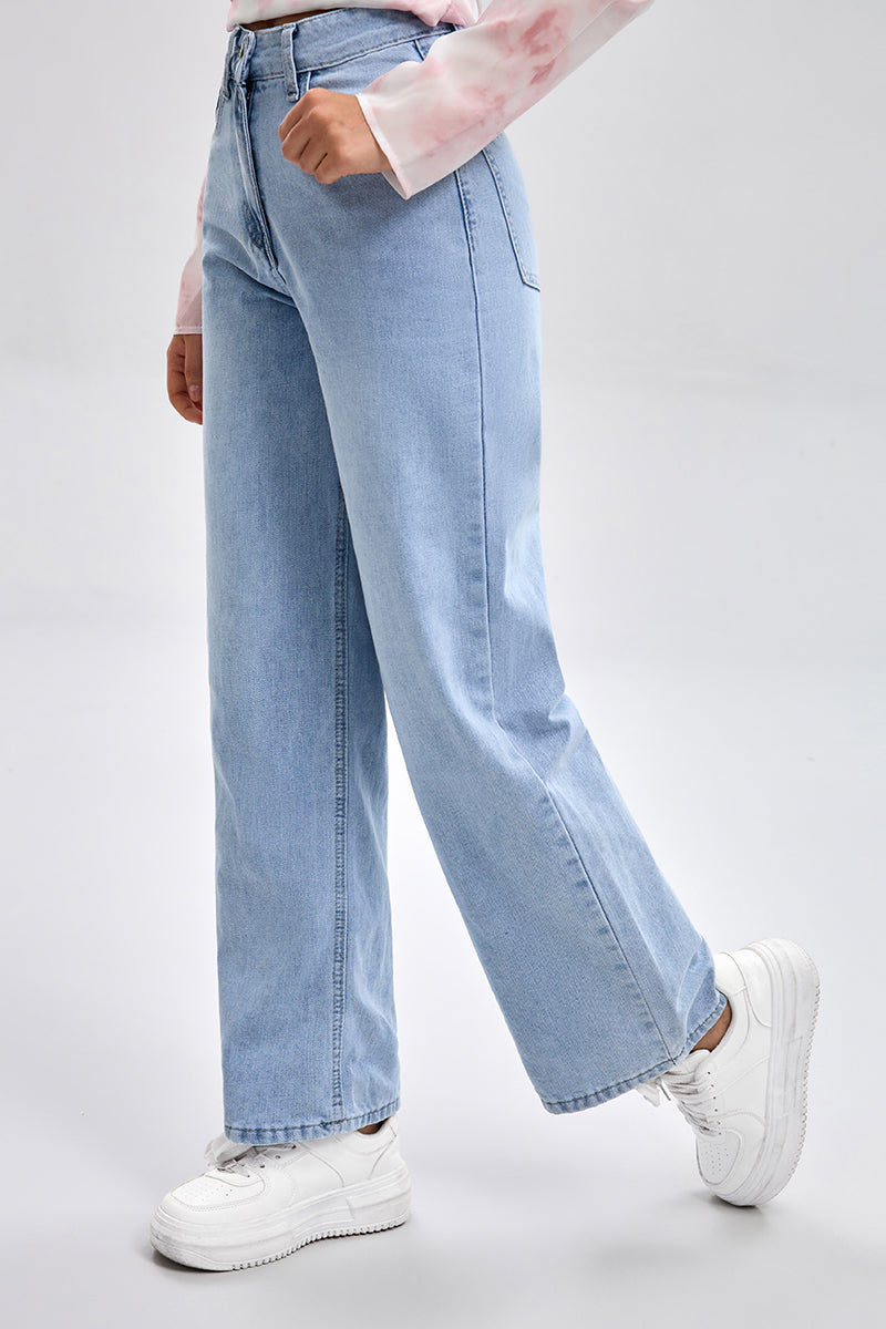 Women's denim pants designed for everyday comfort featuring a high waist and wide leg fit Structured denim fabric offers a flattering relaxed silhouette Suitable for daily wear casual outings and modern street style Easy to pair with tops and shirts providing versatility and comfort Ideal choice for women looking for timeless denim suitable for Saudi lifestyle and daily use