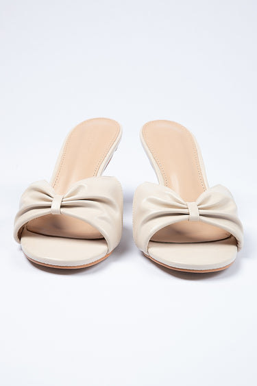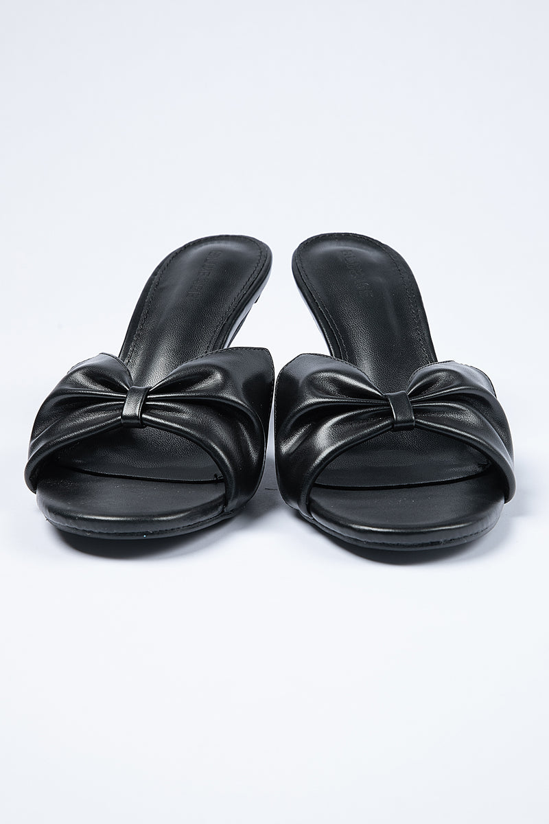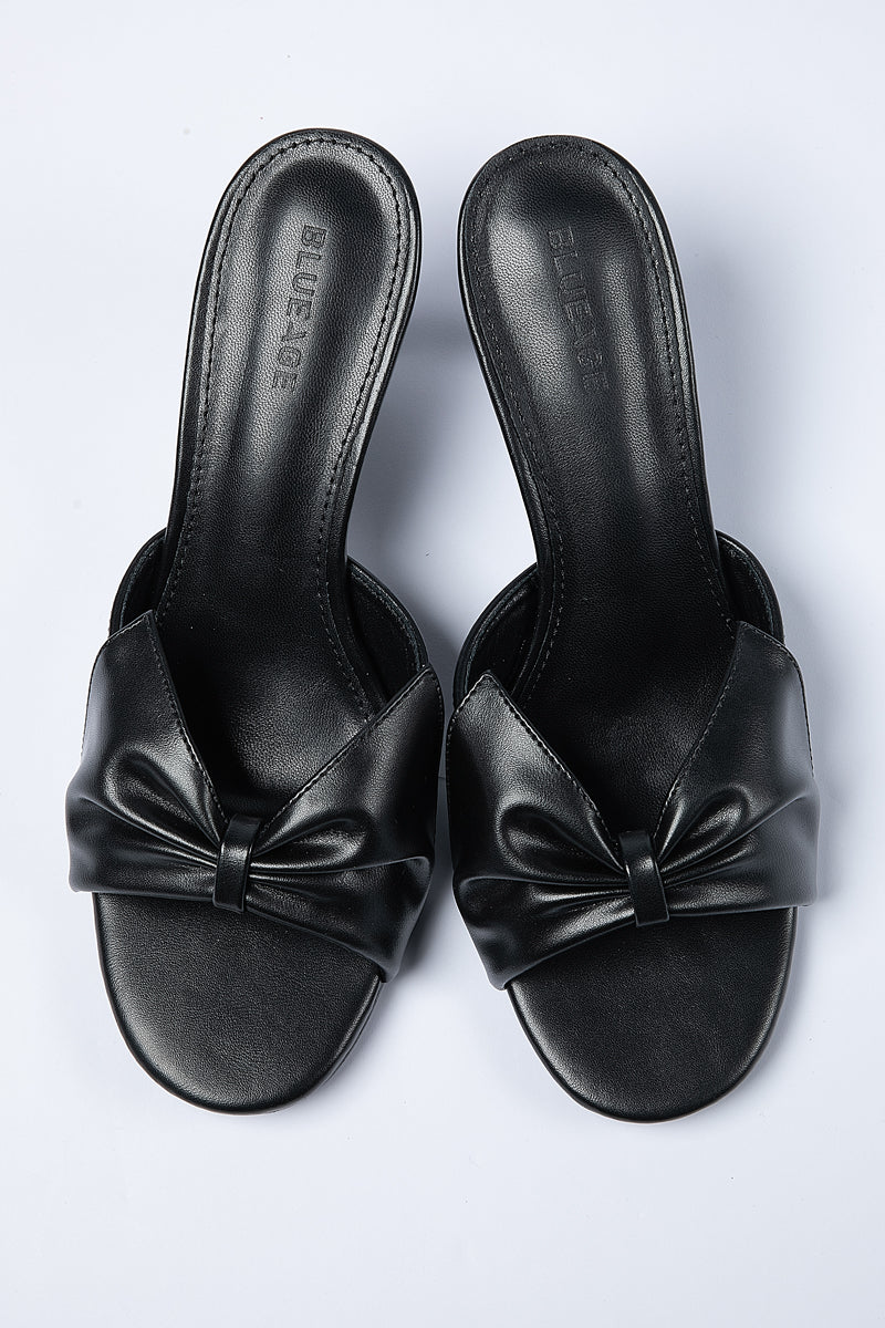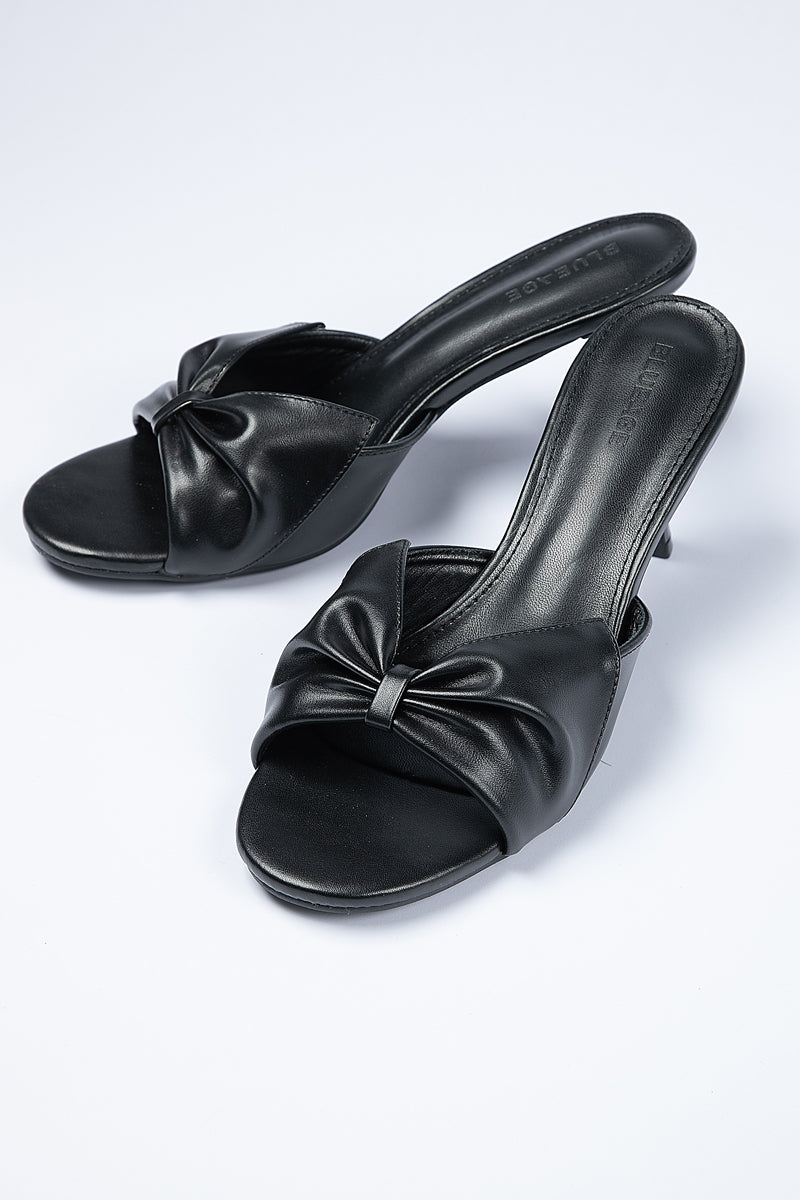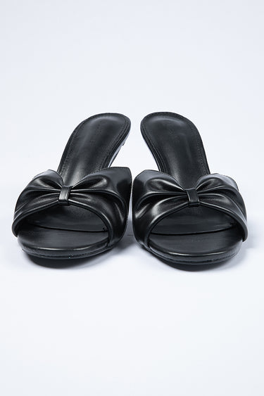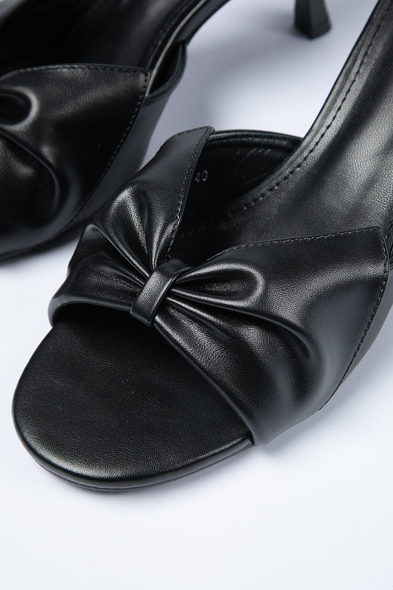 Elegant sandals designed with a slim high heel and open toe silhouette Featuring a soft bow detail that adds a refined feminine touch Slip on design offers easy wear while maintaining a polished and balanced look Ideal for versatile styling across casual and occasion outfits