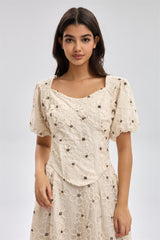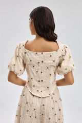 Women's blouse designed with an elegant fitted silhouette and delicate embroidered detailing Features short sleeves and a refined neckline offering a feminine and polished look Lightweight construction provides comfort for extended wear Suitable for occasions gatherings and elevated daily styling Easy to pair with skirts or trousers A versatile women's top ideal for Saudi fashion wardrobes
