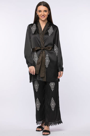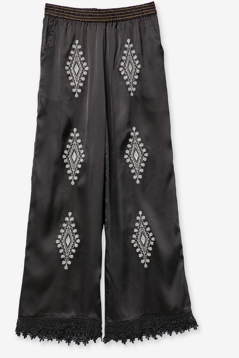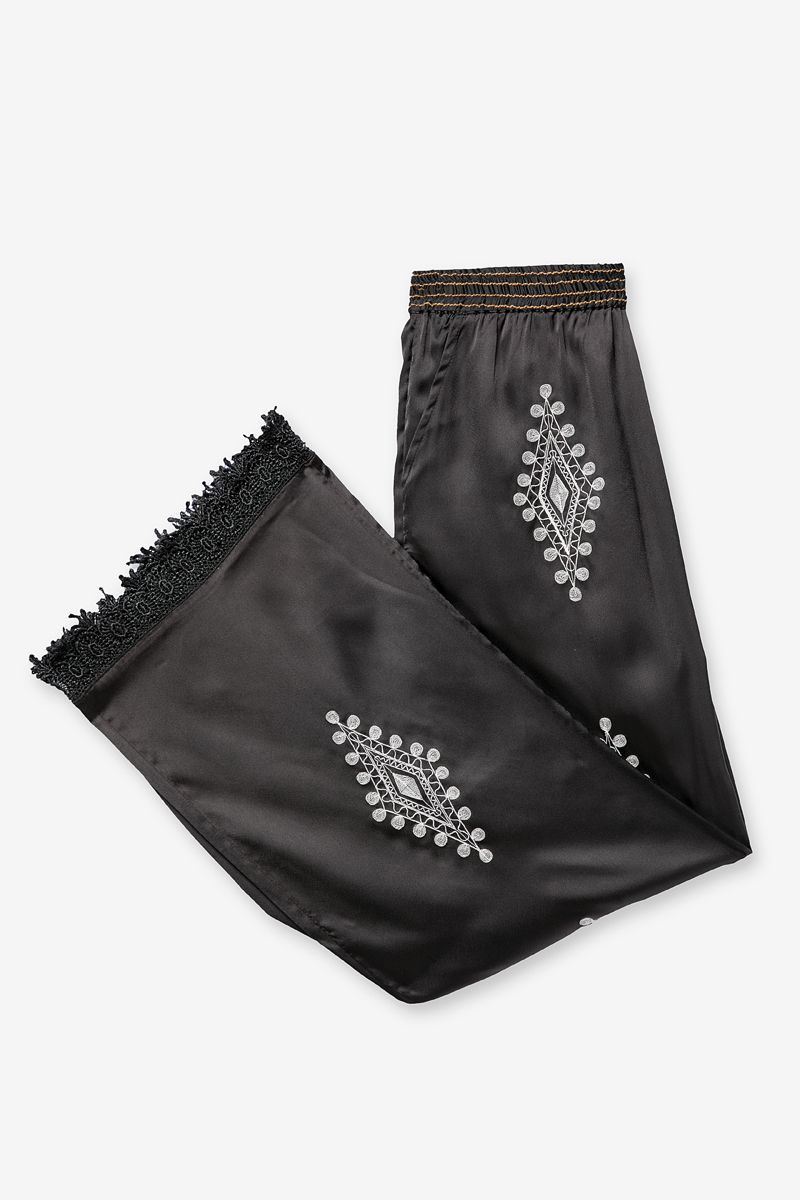 decorated with embroidery details on legs and crochet knitting on bottom legs