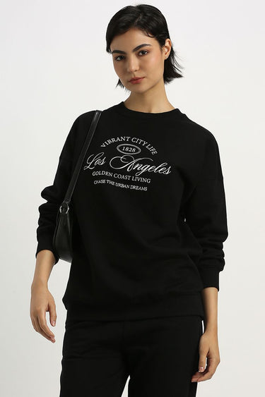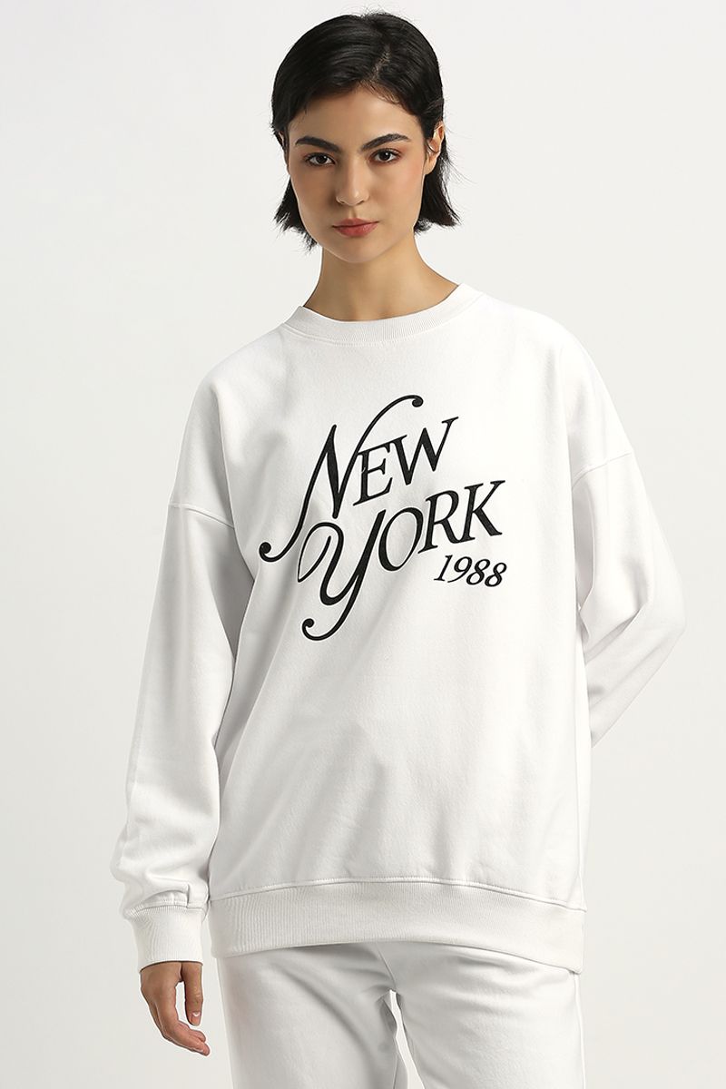 A relaxed-fit sweatshirt featuring a bold front design that adds a stylish, urban edge. Finished with ribbed cuffs and hem for comfort, this versatile piece is perfect for casual everyday wear.
