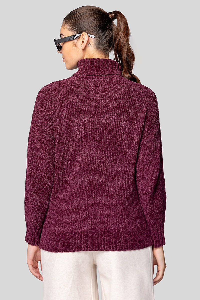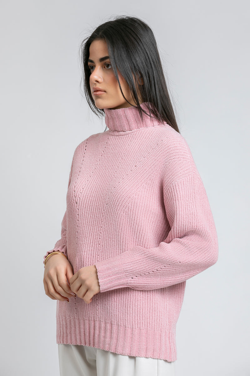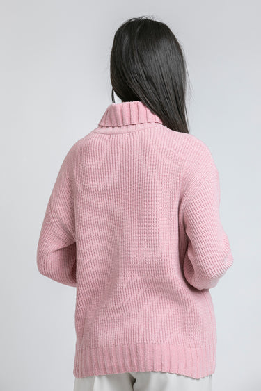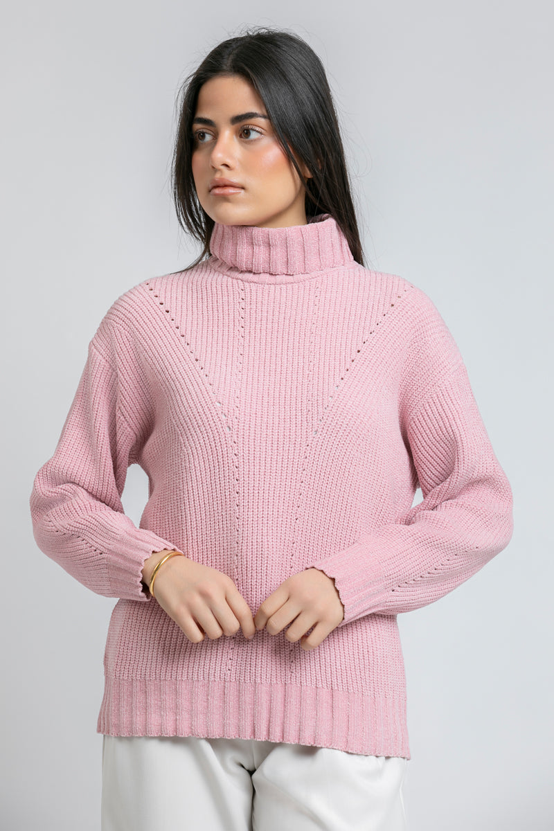 A soft knitted sweater featuring a high neckline and long sleeves for warmth and comfort. Designed with subtle knit details that add a modern touch, making it perfect for casual winter looks.
