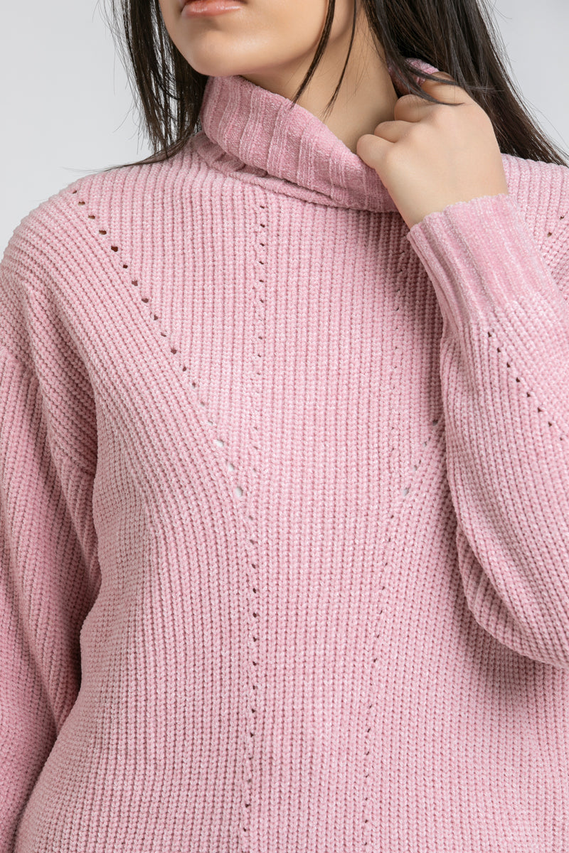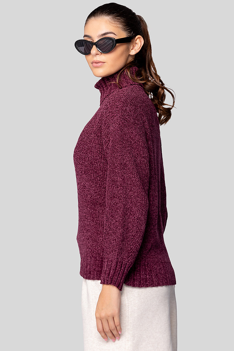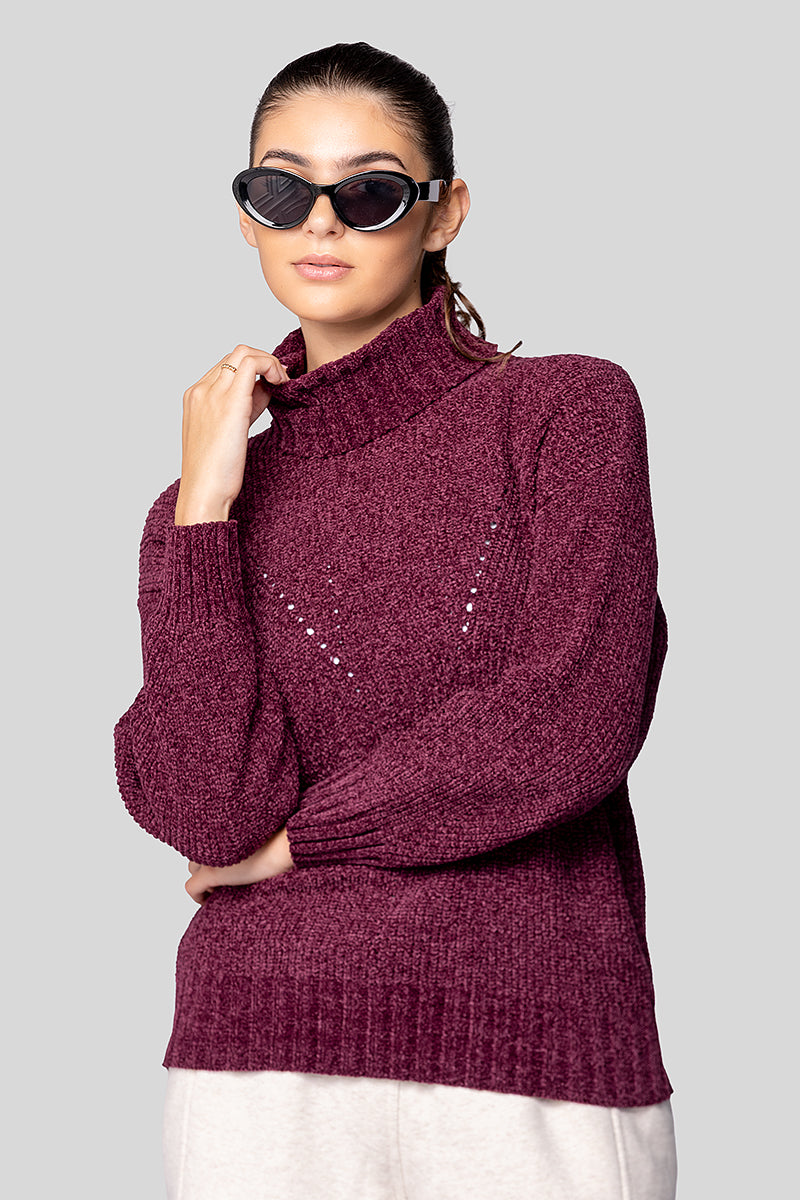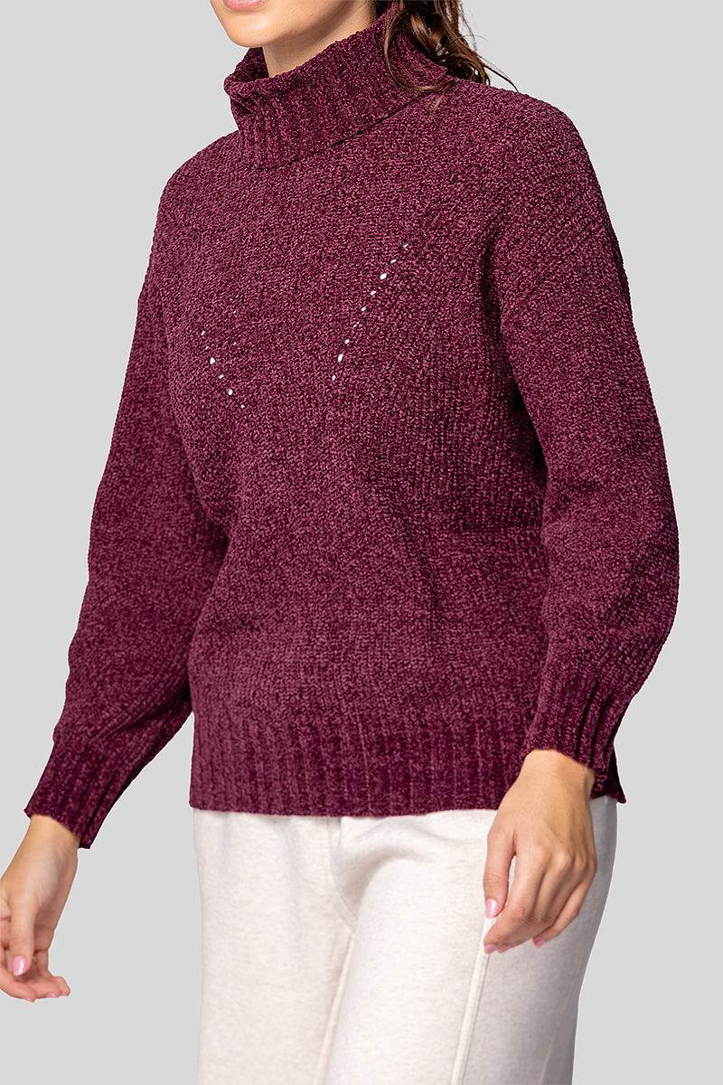 A soft knitted sweater featuring a high neckline and long sleeves for warmth and comfort. Designed with subtle knit details that add a modern touch, making it perfect for casual winter looks.