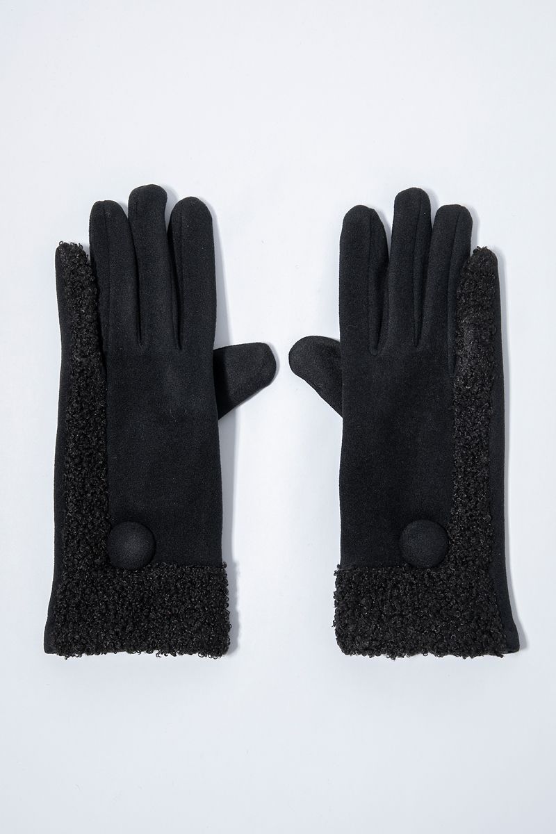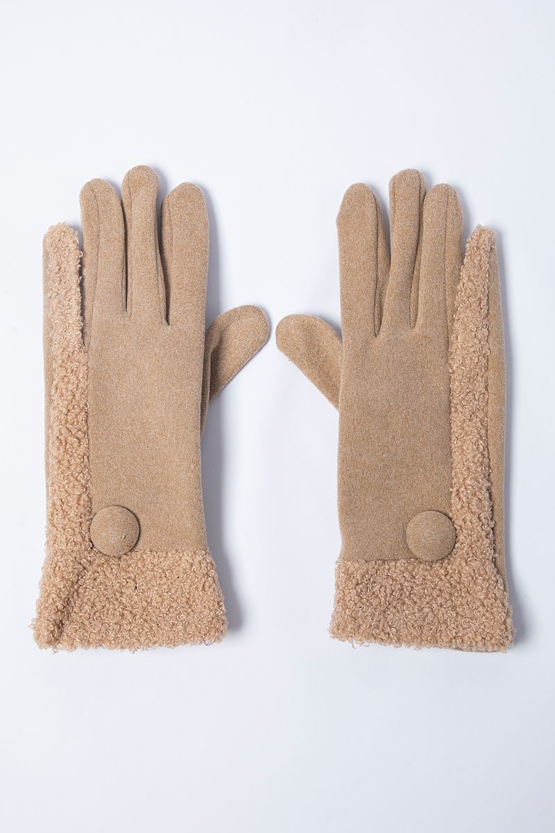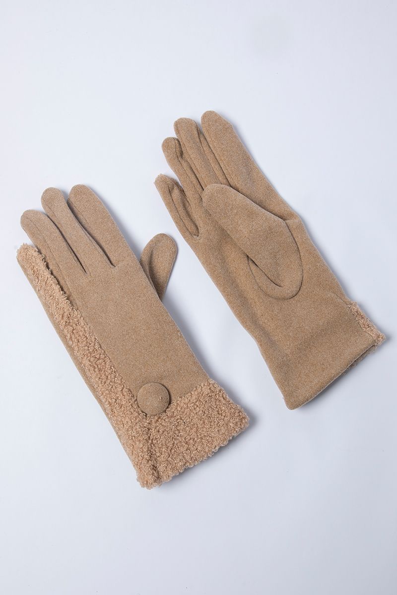 Elegant suede gloves featuring a soft shearling cuff and a button detail Designed to provide warmth and style for everyday winter wear