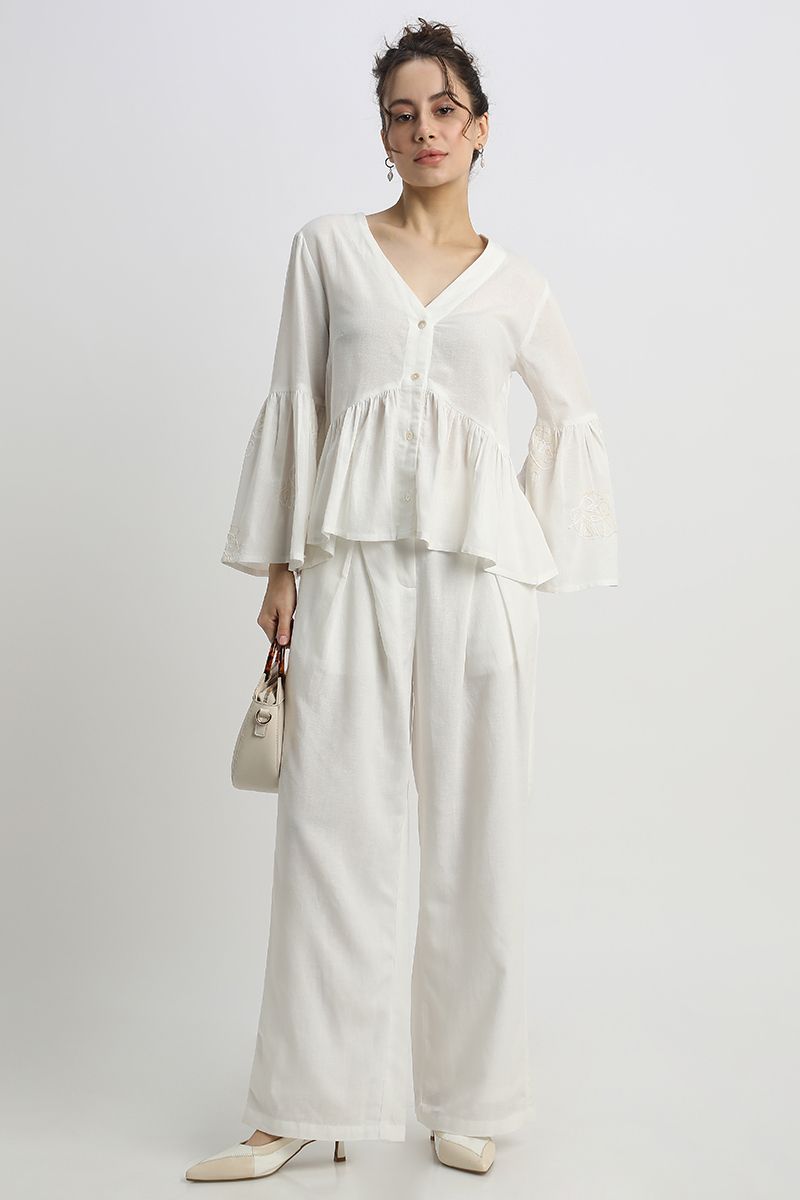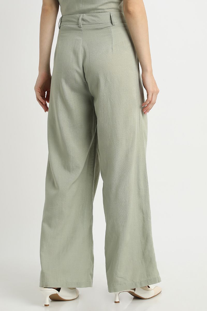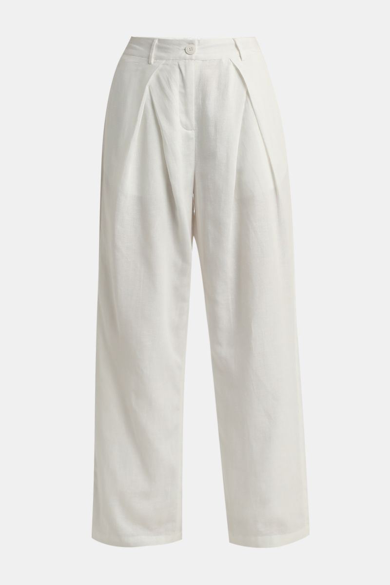 Womens Flowy Wide-Leg Pants Solid Color with Front Pleats