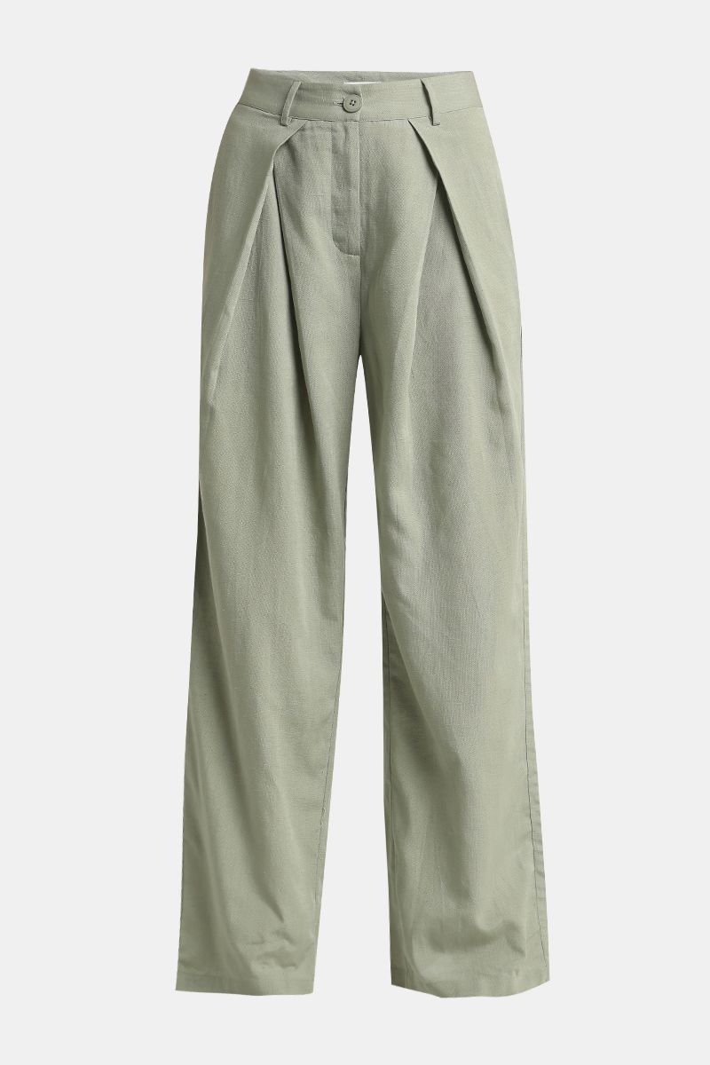 Elevate your wardrobe with these elegant women’s flowy wide-leg pants. Featuring a solid color design, subtle pleat details on the front, practical pockets, and secure button and zipper closure at the waist. Perfect for both casual and formal occasions, offering comfort and sophisticated style.