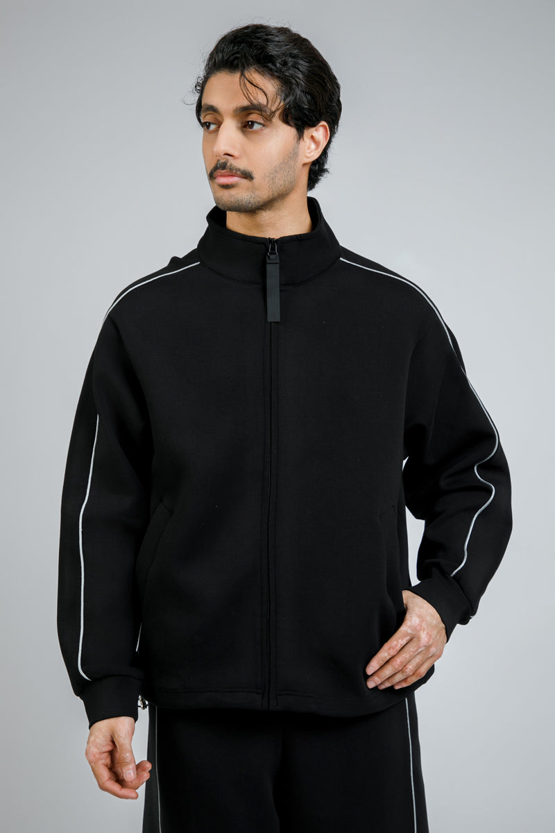 A modern essential designed for comfort, layering, and everyday wear. This zip-up jacket features a smooth, structured fabric that provides warmth while maintaining a clean, contemporary shape. The stand collar adds a refined touch, while the full-length zipper allows flexible styling. Finished with subtle seam detailing and practical side pockets, this piece balances function and minimal design for daily use.