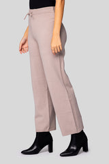 Elegant knitted pants designed in a relaxed wide-leg fit, featuring an elastic waistband with an adjustable drawstring for a personalized fit. Crafted from soft fabric that offers both warmth and comfort, finished with ribbed hems for a practical and stylish touch. Perfect for chic everyday outfits or casual lounging.