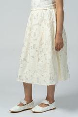 Midi skirt with a textured fabric finish and softly flared silhouette. Designed with a comfortable waistband and back zip closure for easy wear. Lightweight and elegant, suitable for everyday outfits or casual occasions.