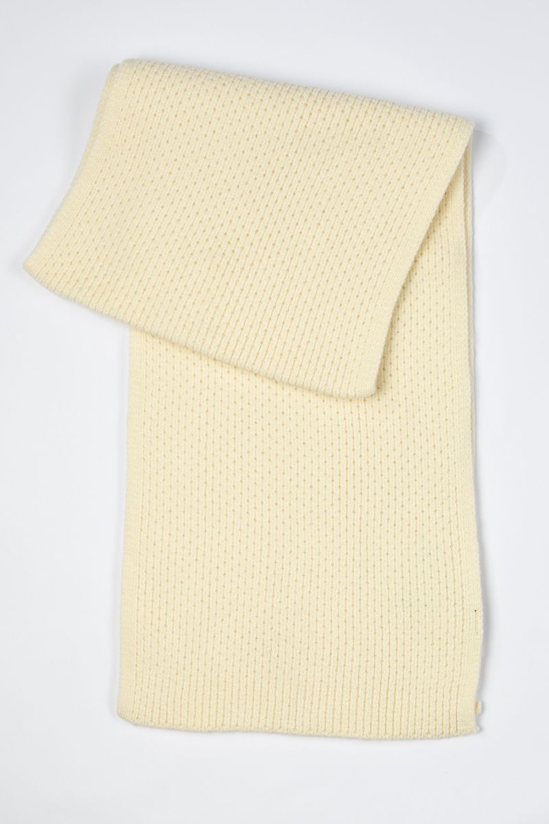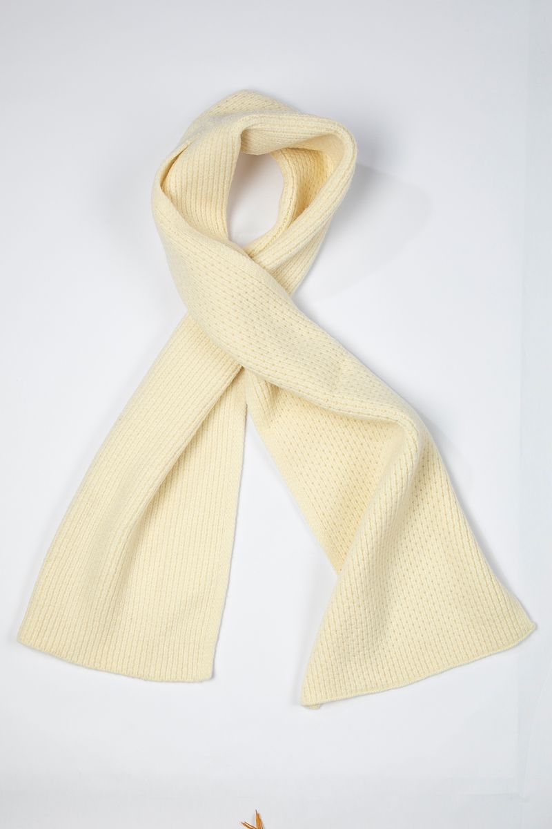 Classic knitted scarf designed for warmth and comfort. Its simple textured finish and versatile design make it an essential accessory for layering with winter outfits.